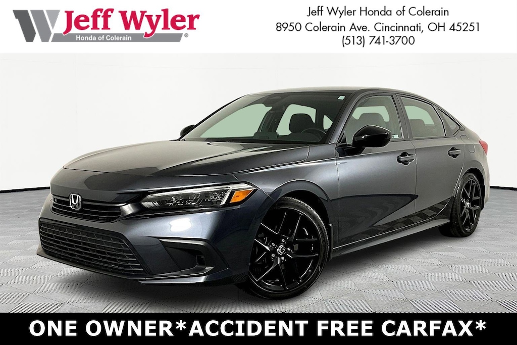 Jeff Wyler Honda of Colerain is very proud to offer this good-looking 2024 Honda Civic Sport in Meteorite Gray Metallic. Well equipped with: 4-Wheel Disc Brakes, 8 Speakers, ABS brakes, Adaptive Cruise Control: Adaptive Cruise Control (ACC) with Low-Speed Follow, Air Conditioning, Alloy wheels, AM/FM radio, Apple CarPlay/Android Auto, Auto High-beam Headlights, Automatic temperature control, Brake assist, Bumpers: body-color, Cloth/Leatherette Seating Surfaces, Delay-off headlights, Driver door bin, Driver vanity mirror, Dual front impact airbags, Dual front side impact airbags, Electronic Stability Control, Emergency communication system: HondaLink, Exterior Parking Camera Rear, Four wheel independent suspension, Front anti-roll bar, Front Bucket Seats, Front Center Armrest, Front reading lights, Fully automatic headlights, Illuminated entry, Knee airbag, Leather Shift Knob, Leather steering wheel, Low tire pressure warning, Occupant sensing airbag, Outside temperature display, Overhead airbag, Panic alarm, Passenger door bin, Passenger vanity mirror, Power door mirrors, Power steering, Power windows, Radio data system, Radio: 180-Watt Audio System, Rear anti-roll bar, Rear side impact airbag, Rear window defroster, Remote keyless entry, Security system, Speed control, Speed-sensing steering, Steering wheel mounted audio controls, Tachometer, Telescoping steering wheel, Tilt steering wheel, Traction control, Trip computer, and Wheels: 18" Gloss Black Alloy.