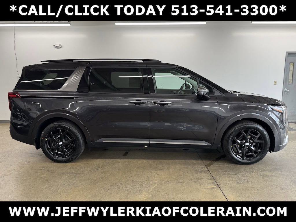 Jeff Wyler Kia of Colerain is honored to offer this good-looking 2025 Kia Carnival Hybrid SX Prestige in Panthera Metal. 12 Speakers, 3rd row seats: split-bench, 4-Wheel Disc Brakes, ABS brakes, Air Conditioning, Alloy wheels, AM/FM radio: SiriusXM, Apple CarPlay & Android Auto, Auto High-beam Headlights, Auto-dimming Rear-View mirror, Automatic temperature control, Brake assist, Bumpers: body-color, Carpeted Floor Mats (8-Passenger), Compass, Delay-off headlights, Driver door bin, Driver vanity mirror, Dual front impact airbags, Dual front side impact airbags, Electronic Stability Control, Emergency communication system, Exterior Parking Camera Rear, Four wheel independent suspension, Front anti-roll bar, Front Bucket Seats, Front Center Armrest, Front dual zone A/C, Front fog lights, Front reading lights, Fully automatic headlights, Garage door transmitter: HomeLink, Heads-Up Display, Heated & Ventilated Front Bucket Seats, Heated door mirrors, Heated front seats, Heated steering wheel, Illuminated entry, Knee airbag, Leather Seat Trim, Leather Shift Knob, Leather steering wheel, Low tire pressure warning, Memory seat, Mud Guards, Navigation system: AVN 5.0 Navigation System, Occupant sensing airbag, Outside temperature display, Overhead airbag, Overhead console, Panic alarm, Passenger door bin, Passenger vanity mirror, Power 2nd-Row Moonroof, Power door mirrors, Power driver seat, Power Liftgate, Power moonroof, Power passenger seat, Power steering, Power windows, Radio: AVN 5.0 Navigation System w/SiriusXM, Rain sensing wipers, Rear air conditioning, Rear anti-roll bar, Rear reading lights, Rear window defroster, Rear window wiper, Reclining 3rd row seat, Remote keyless entry, Security system, Speed control, Speed-sensing steering, Split folding rear seat, Spoiler, Steering wheel mounted audio controls, Tachometer, Telescoping steering wheel, Tilt steering wheel, Traction control, Trailer Prewire Harness, Trip computer, Turn signal indicator mirrors, Variably intermittent wipers, Ventilated front seats, and Wheels: 7.5J x 19" Alloy Dark Edition Our PRE-OWNED vehicles are put through a rigorous 167- POINT QUALITY ASSURANCE INSPECTION along with an average amount of over $1,400.00 SPENT to recondition each vehicle so we can be sure to deliver you the highest quality vehicle like you deserve! ***ONLINE PRICE DOES NOT INCLUDE WYLER FAMILY FIRST PACKAGE***