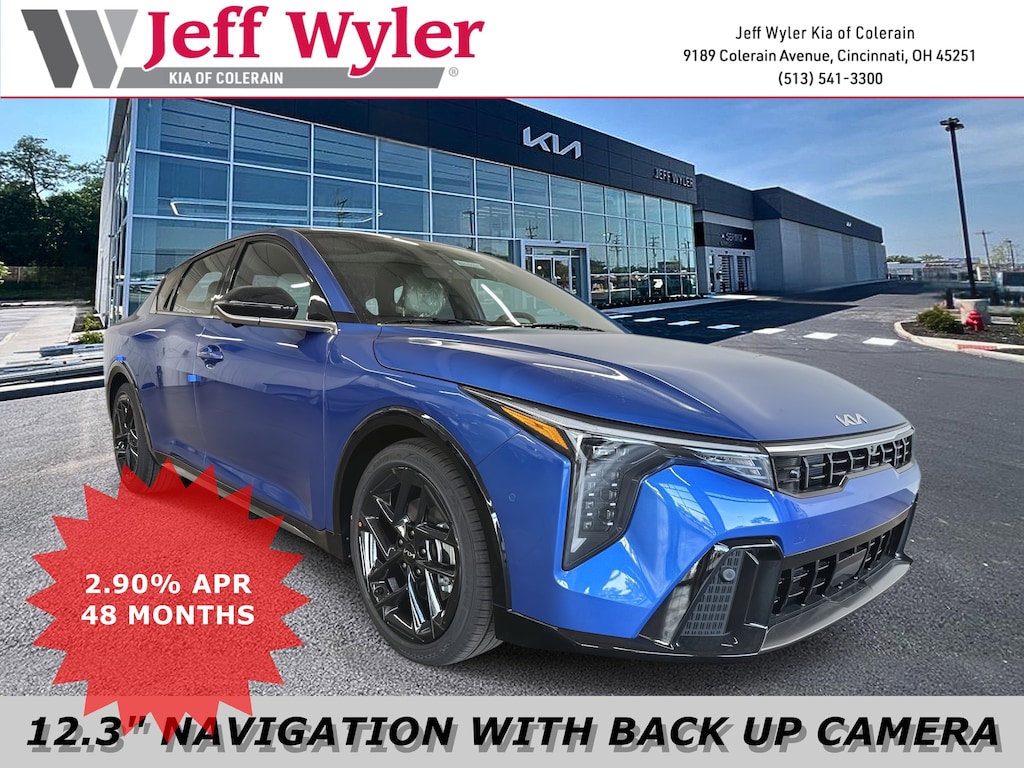 Jeff Wyler Kia of Colerain is proud to offer this good-looking 2025 Kia K4 GT-Line Turbo in Wave Blue. GT-Line Turbo Technology Package (Ambient Lighting, Blind-Spot Collision-Avoidance Assist, Blind-Spot View Monitor, Digital Key, Driver's Seat & Outer-Mirrors Memory, Forward/Reverse/Side Parking Distance Warning, Highway Driving Assist 2, Parking Collision Avoidance-Assist - Reverse, Surround View Monitor, and Ventilated Front Seats), 4-Wheel Disc Brakes, 8 Speakers, ABS brakes, Air Conditioning, Alloy wheels, AM/FM radio: SiriusXM, Apple CarPlay & Android Auto, Auto High-beam Headlights, Automatic temperature control, Brake assist, Bumpers: body-color, Delay-off headlights, Driver door bin, Driver vanity mirror, Dual front impact airbags, Dual front side impact airbags, Electronic Stability Control, Four wheel independent suspension, Front anti-roll bar, Front Bucket Seats, Front Center Armrest, Front dual zone A/C, Front fog lights, Front Heated Bucket Seats, Front reading lights, Fully automatic headlights, harman/kardon® Speakers, Heated door mirrors, Heated front seats, Illuminated entry, Low tire pressure warning, Navigation System, Occupant sensing airbag, Outside temperature display, Overhead airbag, Overhead console, Panic alarm, Passenger door bin, Passenger vanity mirror, Power door mirrors, Power driver seat, Power moonroof, Power steering, Power windows, Radio data system, Radio: 12.3" Touchscreen Audio Display, Rear anti-roll bar, Rear seat center armrest, Rear side impact airbag, Rear window defroster, Remote keyless entry, Security system, Speed control, Split folding rear seat, Sport steering wheel, Steering wheel mounted audio controls, SynTex Seat Trim, Tachometer, Telescoping steering wheel, Tilt steering wheel, Traction control, Trip computer, Turn signal indicator mirrors, Variably intermittent wipers, and Wheels: 18" x 8.0J Black Alloy Our PRE-OWNED vehicles are put through a rigorous 167- POINT QUALITY ASSURANCE INSPECTION along with an average amount of over $1,400.00 SPENT to recondition each vehicle so we can be sure to deliver you the highest quality vehicle like you deserve! ***ONLINE PRICE DOES NOT INCLUDE WYLER FAMILY FIRST PACKAGE***