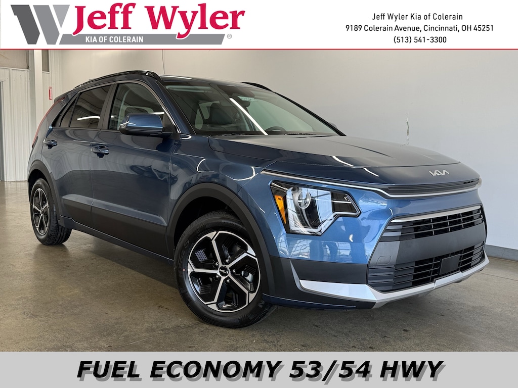 Jeff Wyler Kia of Colerain is proud to offer this wonderful 2025 Kia Niro EX in Mineral Blue. 4-Wheel Disc Brakes, 6 Speakers, ABS brakes, Air Conditioning, Alloy wheels, AM/FM radio: SiriusXM, Apple CarPlay & Android Auto, Auto High-beam Headlights, Automatic temperature control, Brake assist, Bumpers: body-color, Cargo Cover, Cargo Net, Carpeted Floor Mats, Cloth & Vegan Leather-Trimmed Seats, Delay-off headlights, Driver door bin, Driver vanity mirror, Dual front impact airbags, Dual front side impact airbags, Electronic Stability Control, Emergency communication system: Kia Connect (includes 1 year free trial), Exterior Parking Camera Rear, Four wheel independent suspension, Front anti-roll bar, Front Bucket Seats, Front Center Armrest, Front dual zone A/C, Front reading lights, Fully automatic headlights, Heated door mirrors, Heated Front Bucket Seats (3-Steps), Heated front seats, Illuminated entry, Knee airbag, Leather Shift Knob, Low tire pressure warning, Mud Guards, Navigation System, Occupant sensing airbag, Outside temperature display, Overhead airbag, Overhead console, Panic alarm, Passenger door bin, Passenger vanity mirror, Power door mirrors, Power driver seat, Power steering, Power windows, Radio: AM/FM/HD/SiriusXM, Rain sensing wipers, Rear anti-roll bar, Rear seat center armrest, Rear window defroster, Rear window wiper, Remote keyless entry, Security system, Speed control, Speed-sensing steering, Split folding rear seat, Spoiler, Steering wheel mounted audio controls, Telescoping steering wheel, Tilt steering wheel, Traction control, Trip computer, Turn signal indicator mirrors, Variably intermittent wipers, and Wheels: 6.5J x 16" Aero Alloy Our PRE-OWNED vehicles are put through a rigorous 167- POINT QUALITY ASSURANCE INSPECTION along with an average amount of over $1,400.00 SPENT to recondition each vehicle so we can be sure to deliver you the highest quality vehicle like you deserve! ***ONLINE PRICE DOES NOT INCLUDE WYLER FAMILY FIRST PACKAGE***