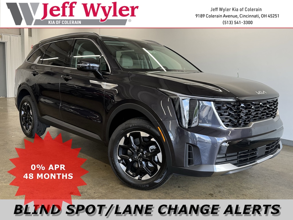 Jeff Wyler Kia of Colerain is delighted to offer this charming 2025 Kia Sorento S in Panthera Metal. 3rd row seats: split-bench, 4-Wheel Disc Brakes, 6 Speakers, ABS brakes, Air Conditioning, Alloy wheels, AM/FM radio: SiriusXM, Apple CarPlay & Android Auto, Auto High-beam Headlights, Automatic temperature control, Brake assist, Bumpers: body-color, Carpeted Floor Mats, Delay-off headlights, Driver door bin, Driver vanity mirror, Dual front impact airbags, Dual front side impact airbags, Electronic Stability Control, Emergency communication system: 911 Connect, Exterior Parking Camera Rear, Four wheel independent suspension, Front anti-roll bar, Front Bucket Seats, Front Center Armrest, Front dual zone A/C, Front reading lights, Fully automatic headlights, Heated door mirrors, Heated Front Bucket Seats, Heated front seats, Illuminated entry, Knee airbag, Leather Shift Knob, Leather steering wheel, Low tire pressure warning, Navigation System, Occupant sensing airbag, Outside temperature display, Overhead airbag, Overhead console, Panic alarm, Passenger door bin, Passenger vanity mirror, Power door mirrors, Power driver seat, Power steering, Power windows, Radio data system, Radio: AM/FM Standard Sound System, Rear anti-roll bar, Rear reading lights, Rear seat center armrest, Rear side impact airbag, Rear window defroster, Rear window wiper, Remote keyless entry, Security system, Speed control, Speed-sensing steering, Split folding rear seat, Spoiler, Steering wheel mounted audio controls, SynTex Artificial Leather Seat Trim, Tachometer, Telescoping steering wheel, Tilt steering wheel, Traction control, Trip computer, Turn signal indicator mirrors, Variably intermittent wipers, and Wheels: 18" Gloss Black Alloy Our PRE-OWNED vehicles are put through a rigorous 167- POINT QUALITY ASSURANCE INSPECTION along with an average amount of over $1,400.00 SPENT to recondition each vehicle so we can be sure to deliver you the highest quality vehicle like you deserve! ***ONLINE PRICE DOES NOT INCLUDE WYLER FAMILY FIRST PACKAGE***