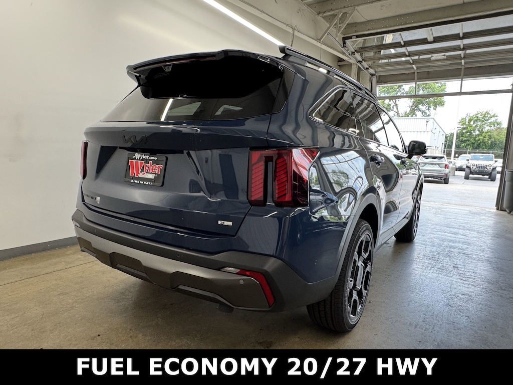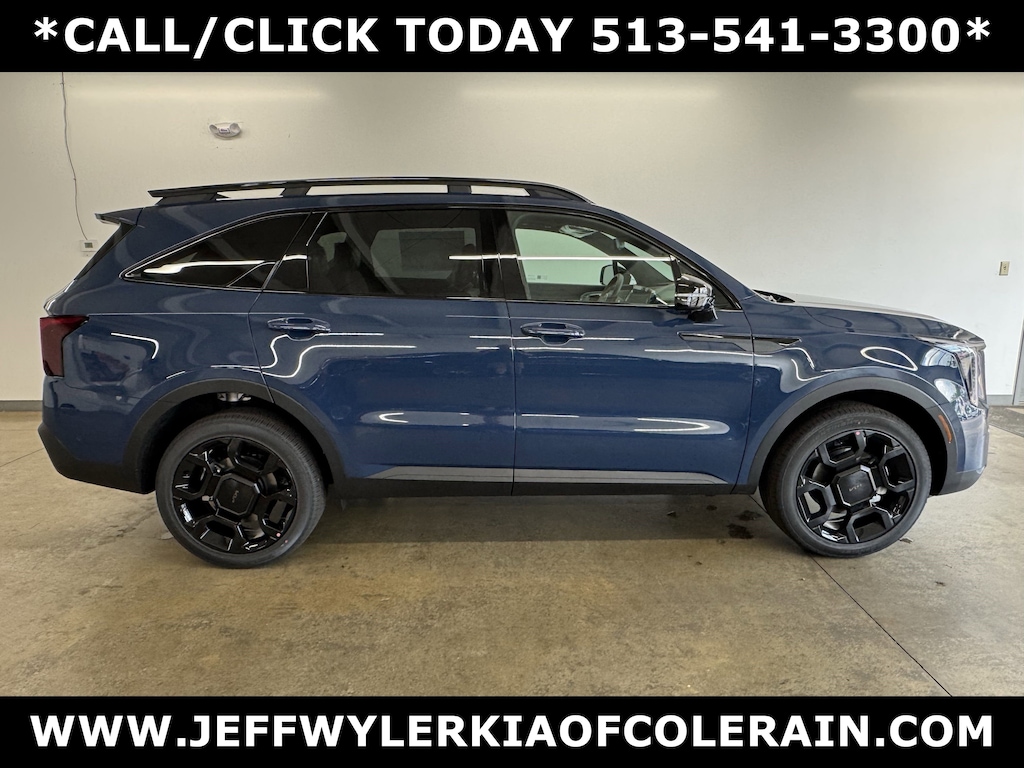 Jeff Wyler Kia of Colerain is delighted to offer this superb-looking 2025 Kia Sorento X-Line SX Prestige in Midnight Lake Blue. Olive Brown Leather Package, 12 Speakers, 3rd row seats: split-bench, 4-Wheel Disc Brakes, ABS brakes, Air Conditioning, Alloy wheels, AM/FM radio: SiriusXM, Apple CarPlay & Android Auto, Auto High-beam Headlights, Auto-dimming Rear-View mirror, Automatic temperature control, Brake assist, Bumpers: body-color, Carpeted Floor Mats, Delay-off headlights, Driver door bin, Driver vanity mirror, Dual front impact airbags, Dual front side impact airbags, Electronic Stability Control, Emergency communication system: 911 Connect, Exterior Parking Camera Rear, Four wheel independent suspension, Front anti-roll bar, Front Bucket Seats, Front Center Armrest, Front dual zone A/C, Front fog lights, Front reading lights, Fully automatic headlights, Garage door transmitter: HomeLink, Heated & Ventilated Front Bucket Seats, Heated door mirrors, Heated front seats, Heated rear seats, Heated steering wheel, Illuminated entry, Knee airbag, Leather Shift Knob, Leather steering wheel, Low tire pressure warning, Memory seat, Navigation System, Occupant sensing airbag, Outside temperature display, Overhead airbag, Overhead console, Panic alarm, Passenger door bin, Passenger vanity mirror, Perforated Genuine Leather Seat Trim, Power door mirrors, Power driver seat, Power Liftgate, Power moonroof, Power passenger seat, Power steering, Power windows, Radio data system, Radio: AM/FM Bose Premium Audio System, Rain sensing wipers, Rear anti-roll bar, Rear reading lights, Rear side impact airbag, Rear window defroster, Rear window wiper, Remote keyless entry, Security system, Speed control, Speed-sensing steering, Split folding rear seat, Spoiler, Steering wheel mounted audio controls, Tachometer, Telescoping steering wheel, Tilt steering wheel, Traction control, Trip computer, Turn signal indicator mirrors, Variably intermittent wipers, Ventilated front seats, and Wheels: 20" Gloss Black X-Line Alloy Our PRE-OWNED vehicles are put through a rigorous 167- POINT QUALITY ASSURANCE INSPECTION along with an average amount of over $1,400.00 SPENT to recondition each vehicle so we can be sure to deliver you the highest quality vehicle like you deserve! ***ONLINE PRICE DOES NOT INCLUDE WYLER FAMILY FIRST PACKAGE*** Price includes: $750 - Sticker Sales Event Retail Bonus Cash. Exp. 12/01/2025