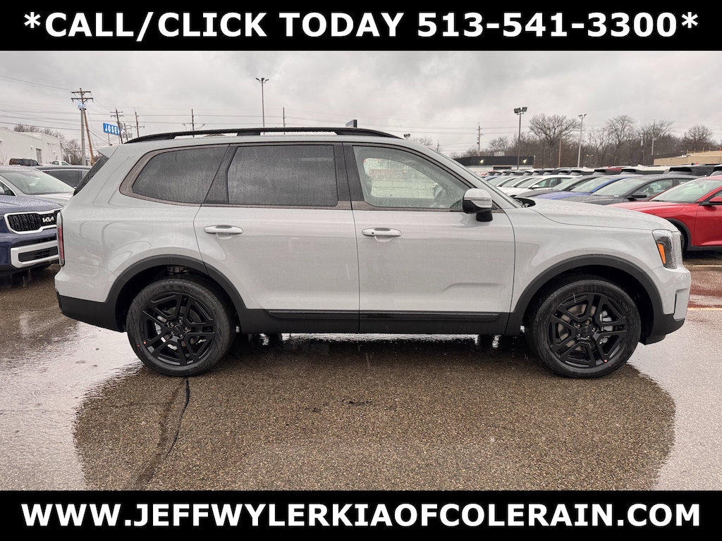 Jeff Wyler Kia of Colerain is proud to offer this handsome 2025 Kia Telluride EX X-Line in Wolf Gray. Terracotta Interior Color Package, 3rd row seats: split-bench, 4-Wheel Disc Brakes, 6 Speakers, ABS brakes, Air Conditioning, Alloy wheels, AM/FM radio: SiriusXM, Apple CarPlay & Android Auto, Auto High-beam Headlights, Auto-dimming Rear-View mirror, Auto-leveling suspension, Automatic temperature control, Brake assist, Bumpers: body-color, Cargo Cover, Carpeted Floor Mats, Compass, Delay-off headlights, Driver door bin, Driver vanity mirror, Dual front impact airbags, Dual front side impact airbags, Electronic Stability Control, Emergency communication system: 911 Connect, Exterior Parking Camera Rear, Four wheel independent suspension, Front anti-roll bar, Front Bucket Seats, Front Center Armrest, Front dual zone A/C, Front reading lights, Fully automatic headlights, Heated & Ventilated Front Bucket Seats, Heated door mirrors, Heated front seats, Heated steering wheel, Hybrid Cargo Net, Illuminated entry, Knee airbag, Leather Seat Trim, Leather Shift Knob, Leather steering wheel, Low tire pressure warning, Navigation System, Occupant sensing airbag, Outside temperature display, Overhead airbag, Overhead console, Panic alarm, Passenger door bin, Passenger vanity mirror, Power door mirrors, Power driver seat, Power Liftgate, Power moonroof, Power passenger seat, Power steering, Power windows, Radio data system, Radio: AM/FM Display Audio System, Rear air conditioning, Rear anti-roll bar, Rear audio controls, Rear reading lights, Rear side impact airbag, Rear window defroster, Rear window wiper, Reclining 3rd row seat, Remote keyless entry, Security system, Speed control, Speed-sensing steering, Split folding rear seat, Spoiler, Steering wheel mounted audio controls, Tachometer, Telescoping steering wheel, Tilt steering wheel, Traction control, Trip computer, Turn signal indicator mirrors, Variably intermittent wipers, Ventilated front seats, and Wheels: 20" x 7.5" Black Finish X-LINE Exclusive Our PRE-OWNED vehicles are put through a rigorous 167- POINT QUALITY ASSURANCE INSPECTION along with an average amount of over $1,400.00 SPENT to recondition each vehicle so we can be sure to deliver you the highest quality vehicle like you deserve! ***ONLINE PRICE DOES NOT INCLUDE WYLER FAMILY FIRST PACKAGE***