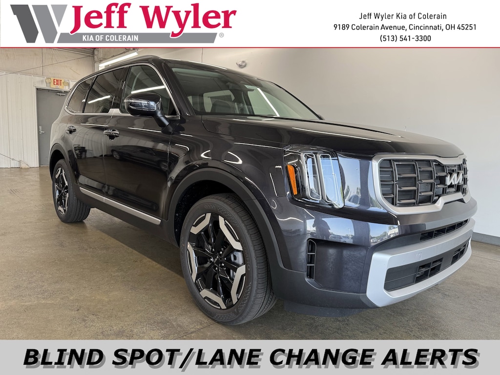 Jeff Wyler Kia of Colerain is pumped up to offer this outstanding-looking 2025 Kia Telluride S in Panthera Metal. 3rd row seats: split-bench, 4-Wheel Disc Brakes, 6 Speakers, ABS brakes, Air Conditioning, Alloy wheels, AM/FM radio: SiriusXM, Apple CarPlay & Android Auto, Auto High-beam Headlights, Auto-Dimming Mirror w/HomeLink, Automatic temperature control, Brake assist, Bumpers: body-color, Carpeted Floor Mats, Delay-off headlights, Driver door bin, Driver vanity mirror, Dual front impact airbags, Dual front side impact airbags, Electronic Stability Control, Emergency communication system: 911 Connect, Exterior Parking Camera Rear, Four wheel independent suspension, Front anti-roll bar, Front Bucket Seats, Front Center Armrest, Front dual zone A/C, Front reading lights, Fully automatic headlights, Heated door mirrors, Heated Front Bucket Seats, Heated front seats, Hybrid Cargo Net, Illuminated entry, Knee airbag, Leather Shift Knob, Leather steering wheel, Low tire pressure warning, Navigation System, Occupant sensing airbag, Outside temperature display, Overhead airbag, Overhead console, Panic alarm, Passenger door bin, Passenger vanity mirror, Power door mirrors, Power driver seat, Power Liftgate, Power moonroof, Power steering, Power windows, Radio data system, Radio: AM/FM Display Audio System, Rear air conditioning, Rear anti-roll bar, Rear audio controls, Rear reading lights, Rear side impact airbag, Rear window defroster, Rear window wiper, Reclining 3rd row seat, Remote keyless entry, Security system, Speed control, Speed-sensing steering, Split folding rear seat, Spoiler, Steering wheel mounted audio controls, SynTex Synthetic Leather Seat Trim, Tachometer, Telescoping steering wheel, Tilt steering wheel, Traction control, Trip computer, Turn signal indicator mirrors, Variably intermittent wipers, and Wheels: 20" x 7.5" Black Finish Our PRE-OWNED vehicles are put through a rigorous 167- POINT QUALITY ASSURANCE INSPECTION along with an average amount of over $1,400.00 SPENT to recondition each vehicle so we can be sure to deliver you the highest quality vehicle like you deserve! ***ONLINE PRICE DOES NOT INCLUDE WYLER FAMILY FIRST PACKAGE***