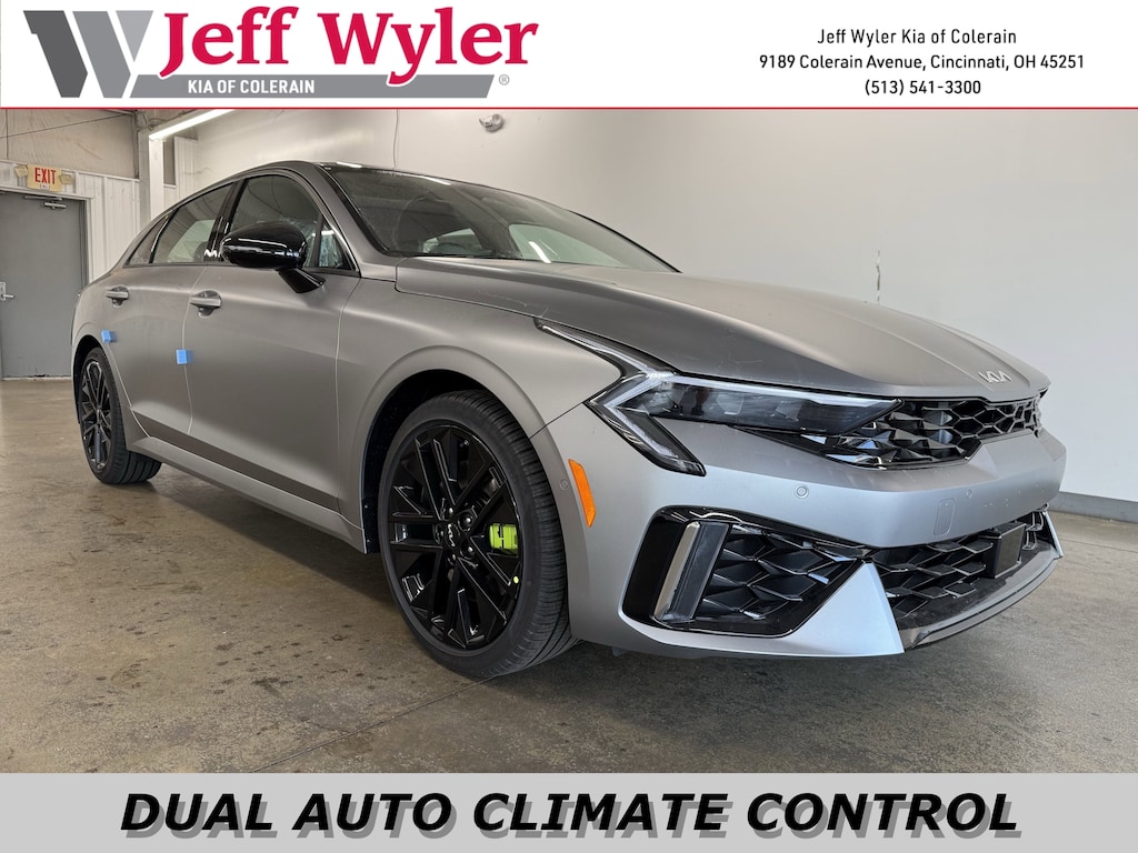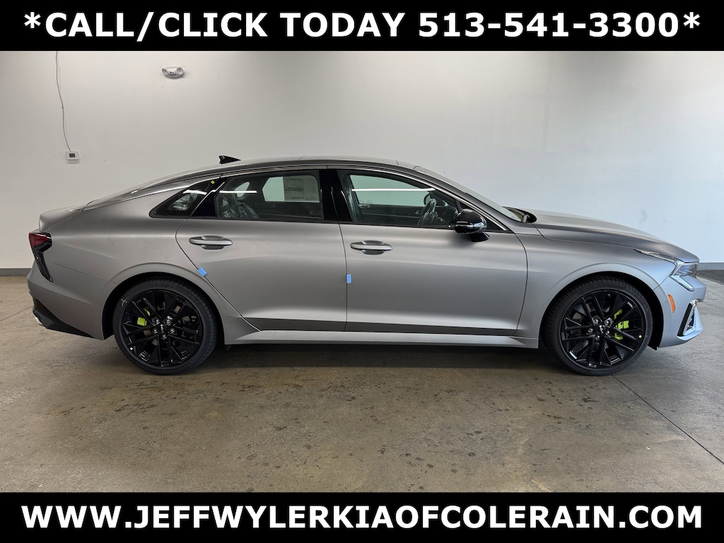 Jeff Wyler Kia of Colerain is pumped up to offer this superb 2026 Kia K5 GT in Steel Matte Gray. GT1 Package (12.3" Instrument Display, 2-Position Memory Driver's Seat & Outside Mirrors, Active Sound Design, Auto Up/Down Front Passenger & Rear Windows, Blind-Spot View Monitor, Bose Premium Audio, Heated Steering Wheel, Parking Collision Avoidance-Assist - Reverse, Parking Distance Warning - Side, Power Folding Mirrors, Power Front Passenger Seat, Smartphone Digital Key, Surround View Monitor, Ventilated Front Seats, and Wheels: 19" x 8.0J Gloss Black Custom Alloy), 4-Wheel Disc Brakes, 6 Speakers, ABS brakes, Air Conditioning, Alloy wheels, AM/FM radio: SiriusXM, Auto High-beam Headlights, Automatic temperature control, Brake assist, Bumpers: body-color, Carpeted Floor Mats, Delay-off headlights, Driver door bin, Driver vanity mirror, Dual front impact airbags, Dual front side impact airbags, Electronic Stability Control, Emergency communication system: Kia Connect (includes 1 year free trial), Four wheel independent suspension, Front anti-roll bar, Front Bucket Seats, Front Center Armrest, Front dual zone A/C, Front fog lights, Front reading lights, Fully automatic headlights, Heated door mirrors, Heated front seats, Heated Sport Bucket Seats, Illuminated entry, Knee airbag, Leather Shift Knob, Leather steering wheel, Low tire pressure warning, Navigation System, Occupant sensing airbag, Outside temperature display, Overhead airbag, Overhead console, Panic alarm, Passenger door bin, Passenger vanity mirror, Power door mirrors, Power driver seat, Power moonroof, Power steering, Power windows, Radio data system, Radio: AM/FM Audio System, Rear anti-roll bar, Rear reading lights, Rear seat center armrest, Rear side impact airbag, Rear window defroster, Remote keyless entry, Security system, Speed control, Speed-sensing steering, Split folding rear seat, Sport steering wheel, Steering wheel mounted audio controls, SynTex Seat Trim, Tachometer, Telescoping steering wheel, Tilt steering wheel, Traction control, Trip computer, Turn signal indicator mirrors, Variably intermittent wipers, and Wheels: 19" x 8.0J Gloss Black Machined Finish Alloy Our PRE-OWNED vehicles are put through a rigorous 167- POINT QUALITY ASSURANCE INSPECTION along with an average amount of over $1,400.00 SPENT to recondition each vehicle so we can be sure to deliver you the highest quality vehicle like you deserve! ***ONLINE PRICE DOES NOT INCLUDE WYLER FAMILY FIRST PACKAGE***