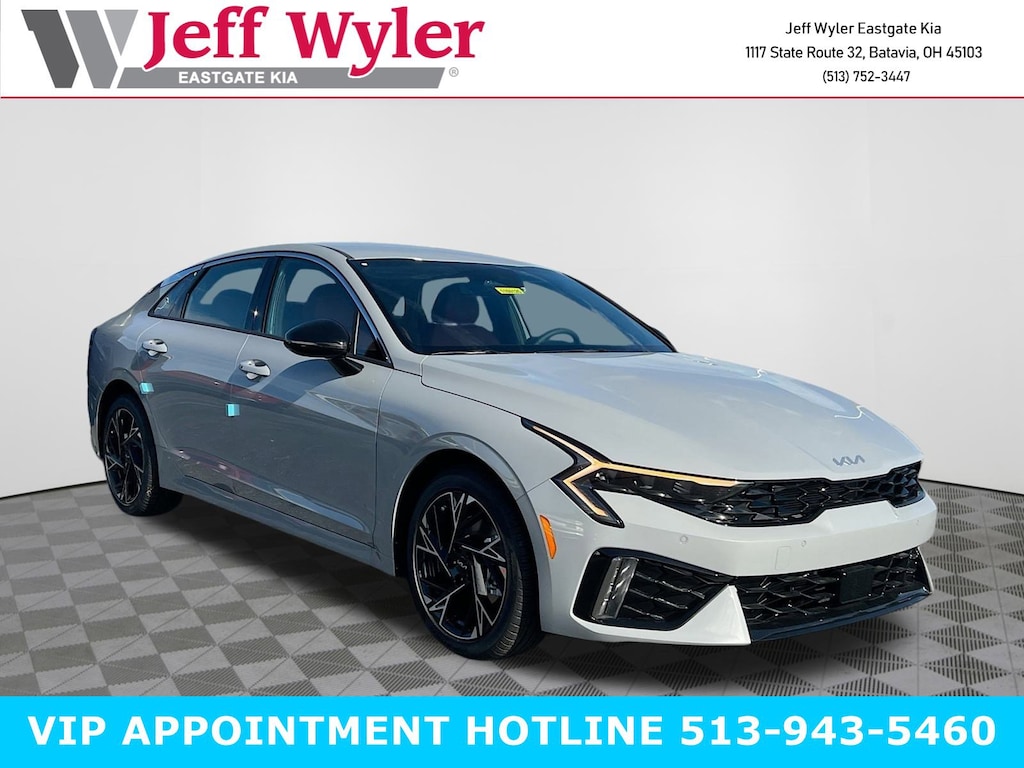 Wolf Gray 2026 Kia K5 GT-Line I4 FWD 8-Speed Automatic 25/36 City/Highway MPG Jeff Wyler Eastgate Auto Mall is honored to offer this great-looking 2026 Kia K5 GT-Line in Wolf Gray. Well equipped with: GT-Line Red Interior Package (SynTex Seat Trim), 4-Wheel Disc Brakes, 6 Speakers, ABS brakes, Air Conditioning, Alloy wheels, AM/FM radio: SiriusXM, Auto High-beam Headlights, Auto-Dimming Mirror w/HomeLink, Automatic temperature control, Brake assist, Bumpers: body-color, Delay-off headlights, Driver door bin, Driver vanity mirror, Dual front impact airbags, Dual front side impact airbags, Electronic Stability Control, Emergency communication system: Kia Connect (includes 1 year free trial), Four wheel independent suspension, Front anti-roll bar, Front Bucket Seats, Front Center Armrest, Front dual zone A/C, Front fog lights, Front reading lights, Fully automatic headlights, Heated door mirrors, Heated Front Bucket Seats, Heated front seats, Heated steering wheel, Illuminated entry, Knee airbag, Leather Shift Knob, Leather steering wheel, Low tire pressure warning, Navigation System, Occupant sensing airbag, Outside temperature display, Overhead airbag, Overhead console, Panic alarm, Passenger door bin, Passenger vanity mirror, Power door mirrors, Power driver seat, Power steering, Power windows, Radio data system, Radio: AM/FM Audio System, Rear anti-roll bar, Rear seat center armrest, Rear side impact airbag, Rear window defroster, Remote keyless entry, Security system, Speed control, Speed-sensing steering, Split folding rear seat, Sport steering wheel, Steering wheel mounted audio controls, Tachometer, Telescoping steering wheel, Tilt steering wheel, Traction control, Trip computer, Turn signal indicator mirrors, Variably intermittent wipers, and Wheels: 18" x 7.5J Gloss Black Machined Finish Alloy. 25/36 City/Highway MPG