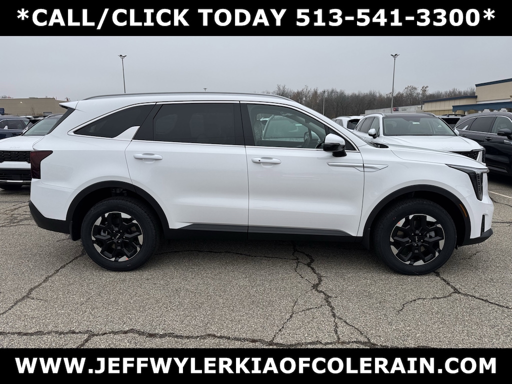 Jeff Wyler Kia of Colerain is excited to offer this great-looking 2026 Kia Sorento S in Glacial White Pearl. S Panoramic Sunroof Package (Full-Length One-Touch Panoroof w/Sliding Sunshade and LED Interior Lighting), 3rd row seats: split-bench, 4-Wheel Disc Brakes, 6 Speakers, ABS brakes, Air Conditioning, Alloy wheels, AM/FM radio: SiriusXM, Apple CarPlay & Android Auto, Auto High-beam Headlights, Automatic temperature control, Brake assist, Bumpers: body-color, Cargo Cover, Carpeted Floor Mats, Delay-off headlights, Driver door bin, Driver vanity mirror, Dual front impact airbags, Dual front side impact airbags, Electronic Stability Control, Emergency communication system: 911 Connect, Exterior Parking Camera Rear, Four wheel independent suspension, Front anti-roll bar, Front Bucket Seats, Front Center Armrest, Front dual zone A/C, Front reading lights, Fully automatic headlights, Heated door mirrors, Heated Front Bucket Seats, Heated front seats, Illuminated entry, Knee airbag, Leather Shift Knob, Leather steering wheel, Low tire pressure warning, Occupant sensing airbag, Outside temperature display, Overhead airbag, Overhead console, Panic alarm, Passenger door bin, Passenger vanity mirror, Power door mirrors, Power driver seat, Power steering, Power windows, Radio data system, Radio: AM/FM Standard Sound System, Rear anti-roll bar, Rear reading lights, Rear seat center armrest, Rear Seat Entertainment System, Rear side impact airbag, Rear window defroster, Rear window wiper, Remote keyless entry, Security system, Speed control, Speed-sensing steering, Split folding rear seat, Spoiler, Steering wheel mounted audio controls, SynTex Artificial Leather Seat Trim, Tachometer, Telescoping steering wheel, Tilt steering wheel, Traction control, Trip computer, Turn signal indicator mirrors, Variably intermittent wipers, and Wheels: 18" Gloss Black Alloy Our PRE-OWNED vehicles are put through a rigorous 167- POINT QUALITY ASSURANCE INSPECTION along with an average amount of over $1,400.00 SPENT to recondition each vehicle so we can be sure to deliver you the highest quality vehicle like you deserve! ***ONLINE PRICE DOES NOT INCLUDE WYLER FAMILY FIRST PACKAGE***