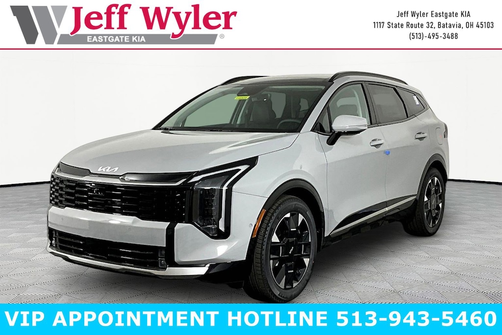 Wolf Gray 2026 Kia Sportage SX-Prestige I4 FWD 8-Speed Automatic 25/33 City/Highway MPG Jeff Wyler Eastgate Auto Mall is proud to offer this stunning-looking 2026 Kia Sportage SX-Prestige in Wolf Gray. Well equipped with: 4-Wheel Disc Brakes, 8 Speakers, ABS brakes, Air Conditioning, All Weather Floor Mats, Alloy wheels, AM/FM radio: SiriusXM, Auto Dimming Mirror with HomeLink, Auto High-beam Headlights, Automatic temperature control, Brake assist, Bumpers: body-color, Compass, Delay-off headlights, Driver door bin, Driver vanity mirror, Dual front impact airbags, Dual front side impact airbags, Electronic Stability Control, Emergency communication system: Kia Connect (includes 1 year free trial), Four wheel independent suspension, Front anti-roll bar, Front Bucket Seats, Front Center Armrest, Front dual zone A/C, Front fog lights, Front reading lights, Fully automatic headlights, harman/kardon® Speakers, Heated and Ventilated Front Bucket Seats, Heated door mirrors, Heated front seats, Heated steering wheel, Illuminated entry, Leather Shift Knob, Leather steering wheel, Low tire pressure warning, Memory seat, Mud Guards, Navigation System, Occupant sensing airbag, Outside temperature display, Overhead airbag, Overhead console, Panic alarm, Passenger door bin, Passenger vanity mirror, Power door mirrors, Power driver seat, Power Liftgate, Power moonroof, Power passenger seat, Power steering, Power windows, Radio: AM/FM/HD Premium Audio System, Rain sensing wipers, Rear anti-roll bar, Rear reading lights, Rear seat center armrest, Rear side impact airbag, Rear window defroster, Rear window wiper, Remote keyless entry, Security system, Speed control, Speed-sensing steering, Split folding rear seat, Spoiler, Steering wheel mounted audio controls, Syntex Premium Leatherette Seat Trim, Tachometer, Telescoping steering wheel, Tilt steering wheel, Traction control, Trip computer, Turn signal indicator mirrors, Variably intermittent wipers, Ventilated front seats, and Wheels: 19" x 7.5J Alloy. 25/33 City/Highway MPG