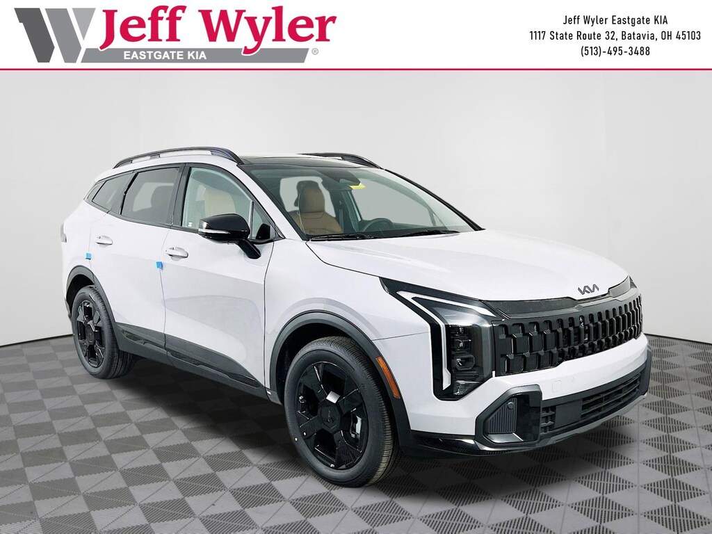Wolf Gray 2026 Kia Sportage Hybrid X-Line 1.6L Turbo GDI 4-Cylinder AWD 6-Speed Automatic 35/36 City/Highway MPG Jeff Wyler Eastgate Auto Mall is proud to offer this stunning 2026 Kia Sportage Hybrid X-Line in Wolf Gray. Well equipped with: 4-Wheel Disc Brakes, 6 Speakers, ABS brakes, Air Conditioning, Alloy wheels, Auto High-beam Headlights, Auto-Dimming Mirror with HomeLink, Automatic temperature control, Brake assist, Bumpers: body-color, Delay-off headlights, Driver door bin, Driver vanity mirror, Dual front impact airbags, Dual front side impact airbags, Electronic Stability Control, Emergency communication system, Four wheel independent suspension, Front anti-roll bar, Front Bucket Seats, Front Center Armrest, Front dual zone A/C, Fully automatic headlights, Heated door mirrors, Heated Front Bucket Seats, Heated front seats, Illuminated entry, Leather steering wheel, Low tire pressure warning, Occupant sensing airbag, Outside temperature display, Overhead airbag, Overhead console, Panic alarm, Passenger door bin, Passenger vanity mirror, Power door mirrors, Power driver seat, Power Liftgate, Power steering, Power windows, Radio: AM/FM/HD Audio System, Rain sensing wipers, Rear anti-roll bar, Rear seat center armrest, Rear side impact airbag, Rear window defroster, Rear window wiper, Remote keyless entry, Security system, Speed control, Speed-sensing steering, Split folding rear seat, Spoiler, Steering wheel mounted audio controls, Tachometer, Telescoping steering wheel, Tilt steering wheel, Traction control, Trip computer, Turn signal indicator mirrors, and Variably intermittent wipers. 35/36 City/Highway MPG