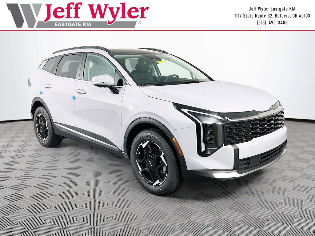 Wolf Gray 2026 Kia Sportage Hybrid EX 1.6L Turbo GDI 4-Cylinder AWD 6-Speed Automatic 35/36 City/Highway MPG Jeff Wyler Eastgate Auto Mall is pleased to offer this good-looking 2026 Kia Sportage Hybrid EX in Wolf Gray. Well equipped with: EX Panoramic Sunroof Package (LED Interior Lighting and Panoramic Sunroof), 4-Wheel Disc Brakes, 6 Speakers, ABS brakes, Air Conditioning, Alloy wheels, Auto High-beam Headlights, Auto-Dimming Mirror with HomeLink, Automatic temperature control, Brake assist, Bumpers: body-color, Delay-off headlights, Driver door bin, Driver vanity mirror, Dual front impact airbags, Dual front side impact airbags, Electronic Stability Control, Emergency communication system, Four wheel independent suspension, Front anti-roll bar, Front Bucket Seats, Front Center Armrest, Front dual zone A/C, Fully automatic headlights, Heated door mirrors, Heated Front Bucket Seats, Heated front seats, Illuminated entry, Leather steering wheel, Low tire pressure warning, Occupant sensing airbag, Outside temperature display, Overhead airbag, Overhead console, Panic alarm, Passenger door bin, Passenger vanity mirror, Power door mirrors, Power driver seat, Power Liftgate, Power steering, Power windows, Radio: AM/FM/HD Audio System, Rain sensing wipers, Rear anti-roll bar, Rear seat center armrest, Rear side impact airbag, Rear window defroster, Rear window wiper, Remote keyless entry, Security system, Speed control, Speed-sensing steering, Split folding rear seat, Spoiler, Steering wheel mounted audio controls, Syntex Leatherette Seat Trim, Tachometer, Telescoping steering wheel, Tilt steering wheel, Traction control, Trip computer, Turn signal indicator mirrors, Variably intermittent wipers, and Wheels: 18" x 7.5J Machined Alloy. 35/36 City/Highway MPG