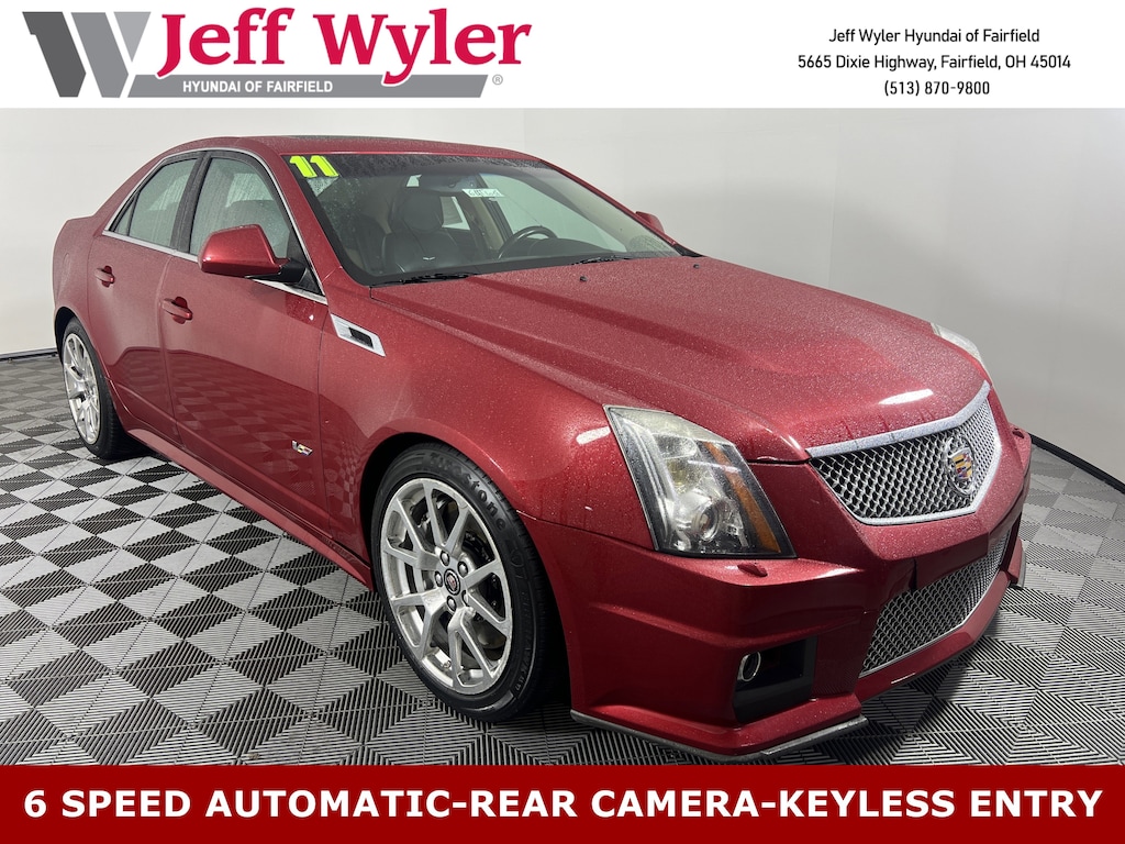 Jeff Wyler Hyundai of Fairfield is very proud to offer this handsome 2011 Cadillac CTS-V in Crystal Red Tintcoat. Well equipped with: Memory Package, Android Auto, Apple CarPlay, CALL NOW FOR YOUR VIP APPOINTMENT 513-870-9800, FULLY SERVICED w/RECORDS, GUARANTEED FINANCING!! NO MATTER YOUR SITUATION WE CAN GET AN APPROVAL!!, THE #1 Volume dealer in the region! Come see why for yourself Today!!, WE PAY MORE FOR YOUR TRADE!!, 10 Speakers, 19" x 9" Fr & 19" x 9.5" Rr Painted Alum. Wheels, 2-Way Power Driver/Front Passenger Lumbar Control, 4-Wheel Disc Brakes, 8-Way Power Passenger Seat Adjuster, ABS brakes, Adaptive suspension, Air Conditioning, Air Filtration System, Alloy wheels, AM/FM radio: XM, Anti-whiplash front head restraints, Auto tilt-away steering wheel, Auto-dimming Rear-View mirror, Automatic temperature control, Bluetooth® For Phone, Brake assist, Bumpers: body-color, CD player, Compass, Delay-off headlights, Driver door bin, Driver vanity mirror, Dual front impact airbags, Dual front side impact airbags, DVD-Audio, Electronic Stability Control, Emergency communication system: OnStar Directions & Connections, Exterior Parking Camera Rear, Four wheel independent suspension, Front anti-roll bar, Front Bucket Seats, Front Center Armrest w/Storage, Front dual zone A/C, Front fog lights, Front reading lights, Fully automatic headlights, Garage door transmitter, Headlight cleaning, Heated door mirrors, Heated Driver & Front Passenger Seats, Heated front seats, High-Intensity Discharge Headlights, Illuminated entry, Keyless Access-Passive Entry, Keyless Start Switch, Leather Seating Surfaces, Leather Shift Knob, LED Spotlight w/Lighting Pipes, Low tire pressure warning, Memory seat, Navigation System, Occupant sensing airbag, Outside temperature display, Overhead airbag, Panic alarm, Passenger door bin, Passenger vanity mirror, Power door mirrors, Power driver seat, Power passenger seat, Power Rake/Telescopic Steering Wheel Column, Power steering, Power windows, Radio data system, Radio: AM/FM Stereo w/CD/DVD (Audio Only)/Nav, Rear anti-roll bar, Rear Parking Sensors, Rear reading lights, Rear seat center armrest, Rear window defroster, Rear-View Camera System, Remote keyless entry, Security system, Speed control, Speed-sensing steering, Spoiler, Steering wheel memory, Steering wheel mounted audio controls, Tachometer, Telescoping steering wheel, Theft-Deterrent System, Tilt steering wheel, Traction control, Trip computer, Trunk Cargo Convenience Net, Ultrasonic Rear Parking Assist, Universal Home Remote, Variably intermittent wipers, Voltmeter, and XM Satellite Radio. Reviews: * Cadillac was once the "Standard of the World," which was more than an advertising slogan. The competition is much deeper, wider and stronger today, but if you would like an unassailable reason to own, enjoy and be proud of a Cadillac again, this is it. Source: KBB.comTO CHECK ON THE AVAILABILITY OF THIS VEHICLE REACH OUT TO ONE OF OUR TEAM MEMBERS!! ALSO SHOP ONLINE AT https://www.jeffwylerhyundaioffairfield.com/ Proudly Serving: Cincinnati, Dayton, Columbus, Louisville, Lexington, Indianapolis, Hamilton, Florence, Alexandria, Beavercreek, Springdale, West Chester, Monroe, Fairfield, Kenwood, Newport and all of greater Cincinnati Ohio, Indiana, and Northern Kentucky.