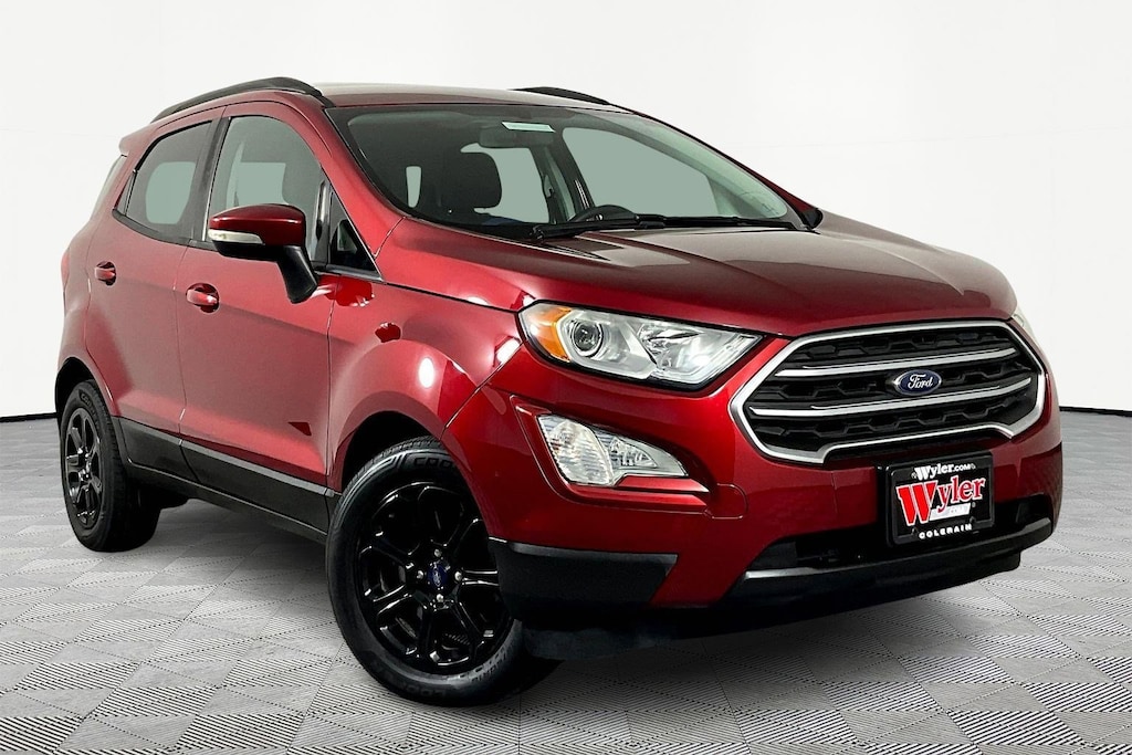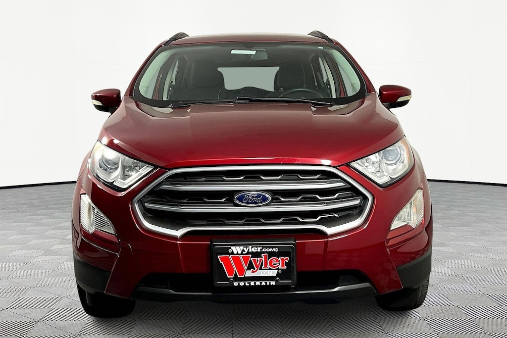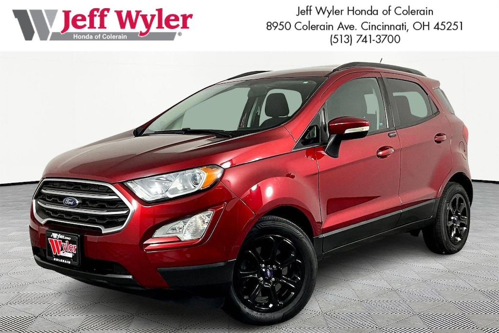 Jeff Wyler Honda of Colerain is honored to offer this fantastic-looking 2018 Ford EcoSport SE in Ruby Red. Well equipped with: Equipment Group 200A, 4-Wheel Disc Brakes, 6 Speakers, ABS brakes, Air Conditioning, Alloy wheels, AM/FM radio: SiriusXM, AppLink/Apple CarPlay and Android Auto, Automatic temperature control, Axle Ratio: 3.44, Brake assist, Bumpers: body-color, Compass, Delay-off headlights, Driver door bin, Driver vanity mirror, Dual front impact airbags, Dual front side impact airbags, Electronic Stability Control, Emergency communication system: SYNC 3 911 Assist, Exterior Parking Camera Rear, Front anti-roll bar, Front Bucket Seats, Front Center Armrest, Front fog lights, Front reading lights, Front wheel independent suspension, Fully automatic headlights, Heated front seats, Illuminated entry, Keyless-Entry Keypad, Knee airbag, Leather Shift Knob, Leather steering wheel, Low tire pressure warning, Occupant sensing airbag, Outside temperature display, Overhead airbag, Overhead console, Panic alarm, Passenger door bin, Passenger vanity mirror, Power door mirrors, Power driver seat, Power moonroof, Power steering, Power windows, Radio data system, Radio: AM/FM Stereo w/MP3 Capable, Rear Parking Sensors, Rear seat center armrest, Rear side impact airbag, Rear window defroster, Rear window wiper, Remote keyless entry, Roof rack: rails only, SiriusXM Radio, Speed control, Speed-sensing steering, Split folding rear seat, Steering wheel mounted audio controls, SYNC 3 Communications & Entertainment System, Tachometer, Telescoping steering wheel, Tilt steering wheel, Tire Inflator & Sealant Kit, Traction control, Trip computer, Turn signal indicator mirrors, Unique Cloth Heated Bucket Seats, Variably intermittent wipers, and Wheels: 16" Shadow Silver-Painted Aluminum.