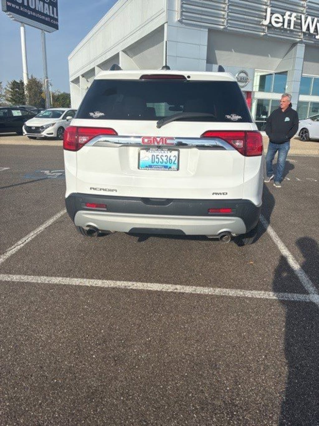 Jeff Wyler Kings Nissan is proud to offer this gorgeous-looking 2019 GMC Acadia SLT-1 in Summit White. Well equipped with: Preferred Equipment Group 4SA, AWD, Jet Black Leather, 155 Amp Alternator, 18" x 7.5" Aluminum (4) Wheels, 3.16 Axle Ratio, 3rd row seats: split-bench, 4-Wheel Disc Brakes, 6-Passenger (2-2-2 Seating Configuration), 8 Speakers, 8-Way Power Front Passenger Seat Adjuster, ABS brakes, Air Conditioning, Alloy wheels, AM/FM radio: SiriusXM, Apple CarPlay/Android Auto, Auto-dimming door mirrors, Auto-dimming Rear-View mirror, Automatic temperature control, Bose Premium 8-Speaker System, Brake assist, Bumpers: body-color, Compass, Delay-off headlights, Driver door bin, Driver vanity mirror, Dual front impact airbags, Dual front side impact airbags, Dual SkyScape 2-Panel Power Sunroof, Electronic Stability Control, Emergency communication system: OnStar and GMC connected services capable, Exterior Parking Camera Rear, Four wheel independent suspension, Front anti-roll bar, Front Bucket Seats, Front Center Armrest, Front dual zone A/C, Front fog lights, Front License Plate Bracket, Front reading lights, Fully automatic headlights, Garage door transmitter, Heated door mirrors, Heated Driver & Front Passenger Seats, Heated front seats, Illuminated entry, Knee airbag, Low tire pressure warning, Occupant sensing airbag, Outside temperature display, Overhead airbag, Overhead console, Panic alarm, Passenger door bin, Passenger vanity mirror, Perforated Leather-Appointed Seat Trim, Power door mirrors, Power Driver Lumbar Control Seat Adjuster, Power driver seat, Power Liftgate, Power Passenger Lumbar Control Seat Adjuster, Power passenger seat, Power steering, Power windows, Premium audio system: GMC Infotainment System, Radio data system, Radio: AM/FM w/8" Diagonal Color Touch Screen, Rear air conditioning, Rear anti-roll bar, Rear reading lights, Rear window defroster, Rear window wiper, Remote keyless entry, Roof rack: rails only, Security system, SiriusXM Radio, Speed control, Speed-sensing steering, Spoiler, Steering wheel mounted audio controls, Tachometer, Telescoping steering wheel, Tilt steering wheel, Traction control, Trip computer, Variably intermittent wipers, and Voltmeter.Ask about available certifications.
