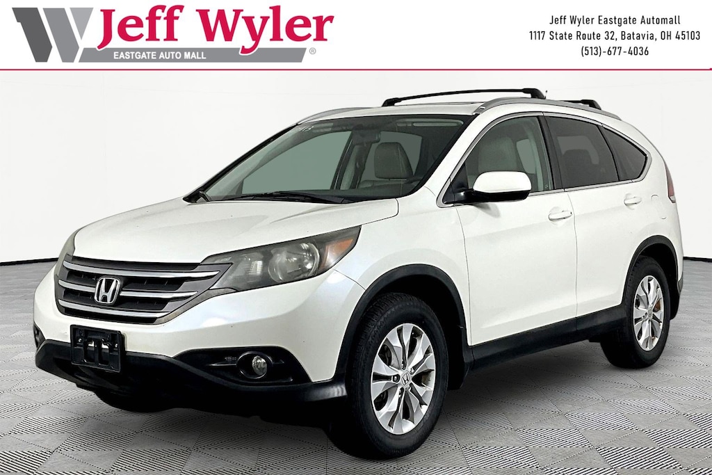 Jeff Wyler Eastgate Auto Mall is delighted to offer this good-looking 2013 Honda CR-V EX-L in White Diamond Pearl. Well equipped with: 17" 10-Spoke Alloy Wheels, 4-Wheel Disc Brakes, 4.44 Axle Ratio, 7 Speakers, ABS brakes, Air Conditioning, Alloy wheels, AM/FM radio: XM, Automatic temperature control, Brake assist, Bumpers: body-color, CD player, Compass, Delay-off headlights, Driver door bin, Driver vanity mirror, Driver's Seat Mounted Armrest, Dual front impact airbags, Dual front side impact airbags, Electronic Stability Control, Exterior Parking Camera Rear, Four wheel independent suspension, Front anti-roll bar, Front Bucket Seats, Front dual zone A/C, Front fog lights, Front reading lights, Heated door mirrors, Heated Front Bucket Seats, Heated front seats, Illuminated entry, Leather Shift Knob, Leather-Trimmed Seats, Low tire pressure warning, Occupant sensing airbag, Outside temperature display, Overhead airbag, Overhead console, Panic alarm, Passenger door bin, Passenger seat mounted armrest, Passenger vanity mirror, Power door mirrors, Power driver seat, Power moonroof, Power steering, Power windows, Radio data system, Radio: AM/FM/CD Audio System w/XM Radio, Rear anti-roll bar, Rear seat center armrest, Rear window defroster, Rear window wiper, Remote keyless entry, Roof rack: rails only, Security system, Speed control, Speed-sensing steering, Speed-Sensitive Wipers, Split folding rear seat, Steering wheel mounted audio controls, Tachometer, Telescoping steering wheel, Tilt steering wheel, Traction control, Trip computer, and Variably intermittent wipers. Reviews: * Lots of room for passengers and cargo; high fuel economy; user-friendly controls; ample tech and family-friendly features; top crash test scores. Source: Edmunds * If youâre looking for simple, dependable transportation in a vehicle that can handle snow and mud as efficiently as it does a day of cruising yard sales, the 2013 Honda CR-V is an excellent choice. Need more reasons? Thereâs good fuel economy, a reasonable price and lots of standard equipment. Source: KBB.comAwards: * 2013 KBB.com Brand Image AwardsKelley Blue Book Brand Image Awards are based on the Brand Watch(tm) study from Kelley Blue Book Market Intelligence. Award calculated among non-luxury shoppers. For more information, visit www.kbb.com. Kelley Blue Book is a registered trademark of Kelley Blue Book Co., Inc. Ask about available certifications. Used vehicles 10 years of age or newer with less than 100,000 miles are eligible for the Wyler Assurance Program, but eligible vehicles must pass our reconditioning process and multi-point inspection. Provided the vehicle passes inspection, vehicles will be eligible for the 6 month/6,000 mile limited warranty. The 6 month/6,000 mile limited warranty is NOT available on AS-IS vehicles, wholesale vehicles, lease buyback/pass-thru vehicles or un-inspected vehicles. Note that this program can also apply to vehicles where the remaining factory coverage is less than 6 months or 6,000 miles. Please check the Federal Trade Commission (FTC) Buyers guide on the vehicle for full details as to whether or not warranty coverage may apply. Contact Dealer for additional details. The Wyler Assurance 6 month/6,000 Mile limited warranty ends 6 months from the date of the Retail Purchase Agreement (BUYERS ORDER) or when the vehicle's odometer registers 6,000 additional miles to the mileage listed on the BUYERS ORDER, whichever comes first. Your Deductible - The warranty holder on your contract pays the first $100 of each covered repair.