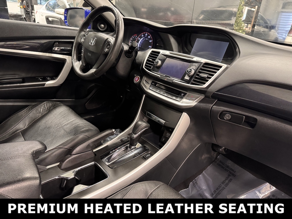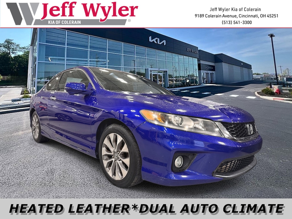 Jeff Wyler Kia of Colerain is excited to offer this outstanding-looking 2014 Honda Accord EX-L in Still Night Pearl. 17" Alloy Wheels, 4-Wheel Disc Brakes, 7 Speakers, ABS brakes, Air Conditioning, Alloy wheels, AM/FM radio: XM, Automatic temperature control, Brake assist, Bumpers: body-color, CD player, Compass, Delay-off headlights, Driver door bin, Driver vanity mirror, Dual front impact airbags, Dual front side impact airbags, Electronic Stability Control, Exterior Parking Camera Rear, Four wheel independent suspension, Front anti-roll bar, Front Bucket Seats, Front Center Armrest, Front dual zone A/C, Front fog lights, Front reading lights, Fully automatic headlights, Heated door mirrors, Heated Front Bucket Seats, Heated front seats, Illuminated entry, Leather steering wheel, Low tire pressure warning, Occupant sensing airbag, Outside temperature display, Overhead airbag, Overhead console, Panic alarm, Passenger door bin, Passenger vanity mirror, Perforated Leather-Trimmed Seats, Power door mirrors, Power driver seat, Power moonroof, Power steering, Power windows, Radio data system, Radio: 360-Watt AM/FM/CD Audio System, Rear anti-roll bar, Rear seat center armrest, Rear window defroster, Remote keyless entry, Security system, Speed control, Speed-sensing steering, Speed-Sensitive Wipers, Spoiler, Steering wheel mounted audio controls, Tachometer, Telescoping steering wheel, Tilt steering wheel, Traction control, Trip computer, Turn signal indicator mirrors, and Variably intermittent wipers Our PRE-OWNED vehicles are put through a rigorous 167- POINT QUALITY ASSURANCE INSPECTION along with an average amount of over $1,400.00 SPENT to recondition each vehicle so we can be sure to deliver you the highest quality vehicle like you deserve! ***ONLINE PRICE DOES NOT INCLUDE WYLER FAMILY FIRST PACKAGE***