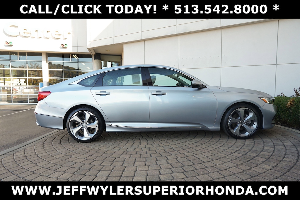 Jeff Wyler Superior Honda is very proud to offer this outstanding-looking 2020 Honda Accord Touring 2.0T in Lunar Silver Metallic. BLUETOOTH, LEATHER, MOONROOF SUNROOF, CLEAN CARFAX...NO ACCIDENTS, HONDA CERTIFIED!, RECENT SUPERIOR TRADE, BOUGHT, SERVICED AND TRADED AT SUPERIOR, ONE OWNER, Apple CarPlay, Android Auto, Blind Spot Information System (BSI) With Cross Traffic Monitor, and Bluetooth® HandsFreeLink - Bluetooth® Streaming Audio Accord Touring 2.0T, HondaTrue Certified Certified, 4D Sedan, I4 DOHC 16V Turbocharged, 10-Speed Automatic, FWD, Lunar Silver Metallic, Gray Leather, 10 Speakers, 4-Wheel Disc Brakes, ABS brakes, Adaptive Cruise Control: Adaptive Cruise Control (ACC) with Low-Speed Follow, Adaptive suspension, Air Conditioning, Alloy wheels, AM/FM radio: SiriusXM, Apple CarPlay/Android Auto, Auto High-beam Headlights, Auto-dimming Rear-View mirror, Automatic temperature control, Blind Spot Information (BSI) System warning, Brake assist, Bumpers: body-color, Compass, Delay-off headlights, Driver door bin, Driver vanity mirror, Dual front impact airbags, Dual front side impact airbags, Electronic Stability Control, Emergency communication system: HondaLink, Exterior Parking Cameras, Forward collision: Collision Mitigation Braking System (CMBS) + FCW mitigation, Four wheel independent suspension, Front anti-roll bar, Front Bucket Seats, Front Center Armrest, Front dual zone A/C, Front fog lights, Front reading lights, Fully automatic headlights, Garage door transmitter: HomeLink, Heads-Up Display, Heated & Ventilated Front Bucket Seats, Heated door mirrors, Heated front seats, Heated rear seats, Illuminated entry, Knee airbag, Lane Departure Warning System, Leather Shift Knob, Leather steering wheel, Leather-Trimmed Seats, Low tire pressure warning, Memory seat, Navigation System, Occupant sensing airbag, Outside temperature display, Overhead airbag, Overhead console, Panic alarm, Passenger door bin, Passenger vanity mirror, Power door mirrors, Power driver seat, Power moonroof, Power passenger seat, Power steering, Power windows, Radio data system, Radio: 450-Watt AM/FM/HD Premium Audio System, Rain sensing wipers, Rear anti-roll bar, Rear seat center armrest, Rear window defroster, Remote keyless entry, Security system, Speed control, Speed-sensing steering, Speed-Sensitive Wipers, Split folding rear seat, Steering wheel mounted audio controls, Tachometer, Telescoping steering wheel, Tilt steering wheel, Traction control, Trip computer, Turn signal indicator mirrors, Variably intermittent wipers, Ventilated front seats, and Wheels: 19" Machine-Finished Alloy w/Gray Inserts Our PRE-OWNED vehicles are put through a rigorous 167- POINT QUALITY ASSURANCE INSPECTION along with an average amount of over $1,400.00 SPENT to recondition each vehicle so we can be sure to deliver you the highest quality vehicle like you deserve! ***ONLINE PRICE DOES NOT INCLUDE WYLER FAMILY FIRST PACKAGE*** Stop by 4777 Spring Grove Ave. Road to see for yourself, or give us a call @ 283-209-1858 to schedule your test drive!