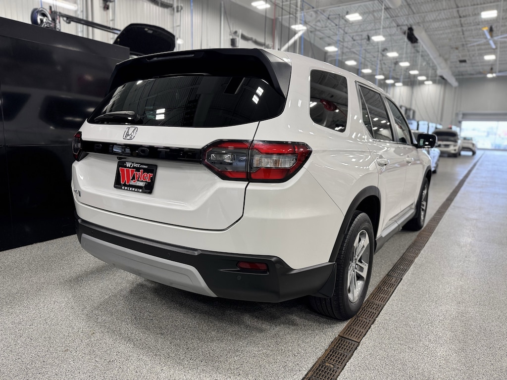 Jeff Wyler Kia of Colerain is honored to offer this good-looking 2023 Honda Pilot EX-L in Platinum White Pearl. 3rd row seats: split-bench, 4-Wheel Disc Brakes, 9 Speakers, ABS brakes, Adaptive Cruise Control: Adaptive Cruise Control (ACC) with Low-Speed Follow, Air Conditioning, Alloy wheels, AM/FM radio: SiriusXM, Apple CarPlay/Android Auto, Auto High-beam Headlights, Auto-dimming Rear-View mirror, Automatic temperature control, Axle Ratio: 4.167, Blind Spot Information (BSI) System warning, Brake assist, Bumpers: body-color, Delay-off headlights, Driver door bin, Driver vanity mirror, Dual front impact airbags, Dual front side impact airbags, Electronic Stability Control, Emergency communication system: HondaLink Assist, Four wheel independent suspension, Front anti-roll bar, Front Bucket Seats, Front Center Armrest, Front dual zone A/C, Front fog lights, Front reading lights, Fully automatic headlights, Garage door transmitter: HomeLink, Heated door mirrors, Heated Front Bucket Seats, Heated front seats, Illuminated entry, Knee airbag, Lane departure: Lane Keeping Assist System (LKAS) active, Leather Seat Trim, Low tire pressure warning, Memory seat, Occupant sensing airbag, Outside temperature display, Overhead airbag, Overhead console, Panic alarm, Passenger door bin, Passenger vanity mirror, Power door mirrors, Power driver seat, Power Liftgate, Power passenger seat, Power steering, Power windows, Radio data system, Radio: 245-Watt Audio System, Rear air conditioning, Rear anti-roll bar, Rear reading lights, Rear window defroster, Rear window wiper, Reclining 3rd row seat, Remote keyless entry, Security system, Speed control, Speed-sensing steering, Speed-Sensitive Wipers, Split folding rear seat, Spoiler, Steering wheel mounted audio controls, Tachometer, Telescoping steering wheel, Tilt steering wheel, Traction control, Trip computer, Turn signal indicator mirrors, Variably intermittent wipers, and Wheels: 18" Machined Face Pewter Gray Our PRE-OWNED vehicles are put through a rigorous 167- POINT QUALITY ASSURANCE INSPECTION along with an average amount of over $1,400.00 SPENT to recondition each vehicle so we can be sure to deliver you the highest quality vehicle like you deserve! ***ONLINE PRICE DOES NOT INCLUDE WYLER FAMILY FIRST PACKAGE***