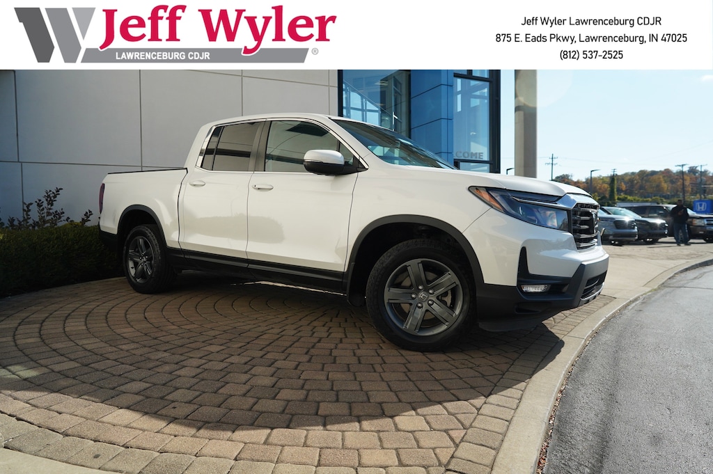 Jeff Wyler Chrysler Dodge Jeep of Lawrenceburg is excited to offer this terrific 2023 Honda Ridgeline RTL in Gray. Leather, 4-Wheel Disc Brakes, 4.33 Axle Ratio, 7 Speakers, ABS brakes, Air Conditioning, Alloy wheels, AM/FM radio: SiriusXM, Apple CarPlay/Android Auto, Auto-dimming Rear-View mirror, Automatic temperature control, Blind Spot Information (BSI) System warning, Bluetooth® Hands-Free Link, Brake assist, Bumpers: body-color, Delay-off headlights, Driver door bin, Driver vanity mirror, Driver's Seat Mounted Armrest, Dual front impact airbags, Dual front side impact airbags, Electronic Stability Control, Exterior Parking Camera Rear, Four wheel independent suspension, Front anti-roll bar, Front Bucket Seats, Front dual zone A/C, Front fog lights, Front reading lights, Fully automatic headlights, Garage door transmitter: HomeLink, Heated door mirrors, Heated Front Bucket Seats, Heated front seats, Illuminated entry, Leather Seat Trim, Low tire pressure warning, Memory seat, Occupant sensing airbag, Outside temperature display, Overhead airbag, Overhead console, Panic alarm, Passenger door bin, Passenger seat mounted armrest, Passenger vanity mirror, Power door mirrors, Power driver seat, Power moonroof, Power passenger seat, Power steering, Power windows, Radio data system, Radio: 215-Watt Audio System w/7 Speakers, Rear air conditioning, Rear anti-roll bar, Rear reading lights, Rear seat center armrest, Rear step bumper, Rear window defroster, Remote keyless entry, Security system, SiriusXM, Speed control, Speed-sensing steering, Split folding rear seat, Steering wheel mounted audio controls, Tachometer, Telescoping steering wheel, Tilt steering wheel, Traction control, Trip computer, Turn signal indicator mirrors, Variably intermittent wipers, and Wheels: 18" Exclusive Pewter Gray Alloy Our PRE-OWNED vehicles are put through a rigorous 167- POINT QUALITY ASSURANCE INSPECTION along with an average amount of over $1,400.00 SPENT to recondition each vehicle so we can be sure to deliver you the highest quality vehicle like you deserve! ***ONLINE PRICE DOES NOT INCLUDE WYLER FAMILY FIRST PACKAGE*** Stop by 4136 Shelbyville Road to see for yourself, or give us a call @ 502-897-3151 to schedule your test drive! Ask about available certifications.