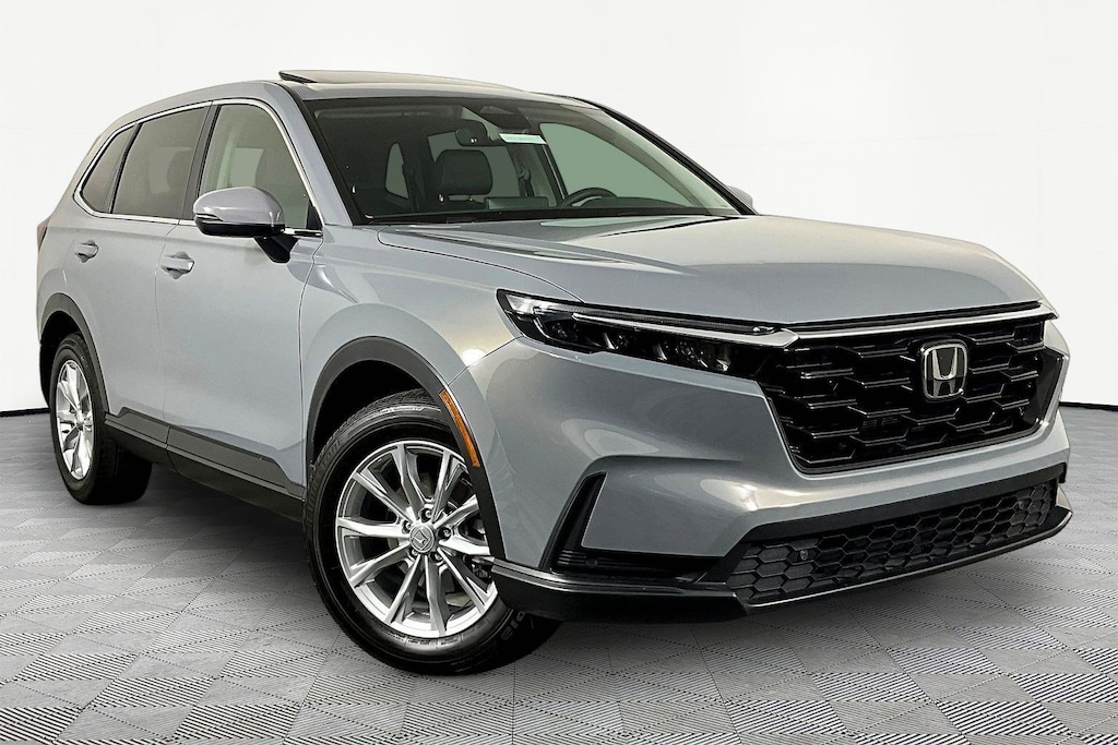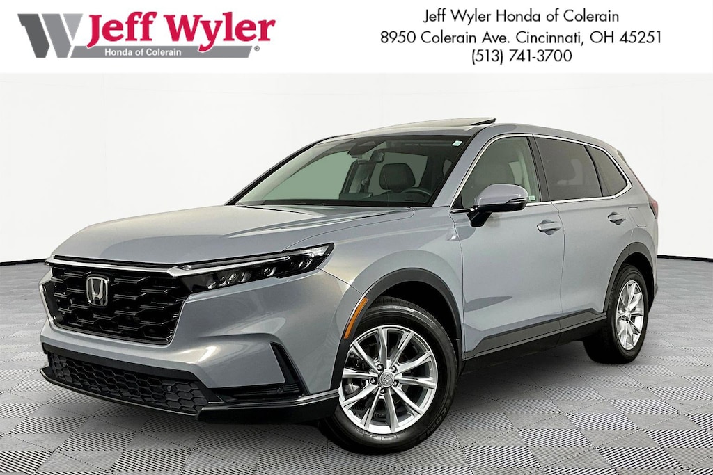 Jeff Wyler Honda of Colerain is delighted to offer this charming 2024 Honda CR-V EX-L in sparkle silver metallic. Well equipped with: 4-Wheel Disc Brakes, 5.64 Axle Ratio, 8 Speakers, ABS brakes, Adaptive Cruise Control: Adaptive Cruise Control (ACC) with Low-Speed Follow, Air Conditioning, Alloy wheels, AM/FM radio: SiriusXM, Auto High-beam Headlights, Auto-dimming Rear-View mirror, Automatic temperature control, Blind Spot Information (BSI) System warning, Brake assist, Bumpers: body-color, Compass, Delay-off headlights, Driver door bin, Driver vanity mirror, Dual front impact airbags, Dual front side impact airbags, Electronic Stability Control, Exterior Parking Camera Rear, Four wheel independent suspension, Front anti-roll bar, Front Bucket Seats, Front Center Armrest, Front dual zone A/C, Front reading lights, Fully automatic headlights, Heated door mirrors, Heated Front Bucket Seats, Heated front seats, Illuminated entry, Knee airbag, Leather Seat Trim, Leather Shift Knob, Leather steering wheel, Low tire pressure warning, Memory seat, Occupant sensing airbag, Outside temperature display, Overhead airbag, Overhead console, Panic alarm, Passenger door bin, Passenger vanity mirror, Power door mirrors, Power driver seat, Power Liftgate, Power moonroof, Power passenger seat, Power steering, Power windows, Radio data system, Radio: 320-Watt AM/FM/HD/SiriusXM Audio System, Rear anti-roll bar, Rear reading lights, Rear seat center armrest, Rear side impact airbag, Rear window defroster, Rear window wiper, Remote keyless entry, Security system, Speed control, Speed-sensing steering, Speed-Sensitive Wipers, Split folding rear seat, Spoiler, Steering wheel mounted audio controls, Tachometer, Telescoping steering wheel, Tilt steering wheel, Traction control, Trip computer, Turn signal indicator mirrors, Variably intermittent wipers, Wheels: 18" Sparkle Silver Metallic, and Wireless Apple CarPlay/Wireless Android Auto.