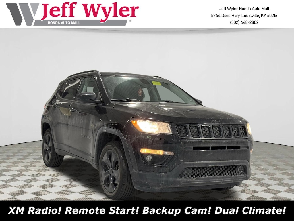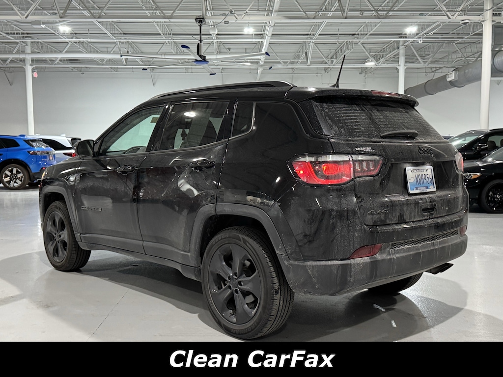 4WD/AWD, Bluetooth, Push Button Start, Backup Camera, CLEAN CARFAX, 4WD, 115V Auxiliary Power Outlet, 3.73 Axle Ratio, 4-Way Power Lumbar Adjust, 4-Wheel Disc Brakes, 6 Speakers, ABS brakes, Air Conditioning, All-Season Floor Mats, Alloy wheels, Altitude Special Edition, AM/FM radio: SiriusXM, Anti-whiplash front head restraints, Apple CarPlay/Android Auto, Auto-Dimming Rear-View Mirror, Automatic temperature control, Black 4x4 Tailgate Badge, Black Day Light Opening Moldings, Black Grille w/Black Rings, Black Roof, Brake assist, Bright Exhaust Tip, Bumpers: body-color, Cluster 7.0" Color Driver Info Display, Compass, Convenience Group, Delay-off headlights, Driver door bin, Driver vanity mirror, Dual front impact airbags, Dual front side impact airbags, Electronic Stability Control, Four wheel independent suspension, Front anti-roll bar, Front Bucket Seats, Front Center Armrest w/Storage, Front dual zone A/C, Front fog lights, Front reading lights, Fully automatic headlights, Gloss Black Compass Badge, Gloss Black Fog Lamp Bezels, Gloss Black Jeep Badge, Gloss Black Lower Rear Fascia Valance, Heated door mirrors, Heated Front Seats, Heated Steering Wheel, Illuminated entry, Knee airbag, Low tire pressure warning, Occupant sensing airbag, Outside temperature display, Overhead airbag, Overhead console, Panic alarm, ParkView Rear Back-Up Camera, Passenger door bin, Passenger vanity mirror, Piano Black Interior Accents, Power 8-Way Driver/Manual 6-Way Pass Seat, Power door mirrors, Power steering, Power windows, Premium Cloth/Vinyl Bucket Seats, Quick Order Package 2GB Altitude, Radio: Uconnect 4 w/7" Display, Rear anti-roll bar, Rear seat center armrest, Rear window defroster, Rear window wiper, Remote keyless entry, Remote Start System, Reversible Carpet/Vinyl Cargo Mat, Roof rack: rails only, Speed control, Split folding rear seat, Spoiler, Steering wheel mounted audio controls, Tachometer, Telescoping steering wheel, Tilt steering wheel, Traction control, Trip computer, Variably intermittent wipers, Wheels: 17" x 7.0" Silver Painted Aluminum, Wheels: 18" x 7.0" Black Aluminum, Windshield Wiper De-Icer. Clean CARFAX. 4WD 9-Speed 948TE Automatic 2.4L I4Recent Arrival!22/30 City/Highway MPGAsk about available certifications.