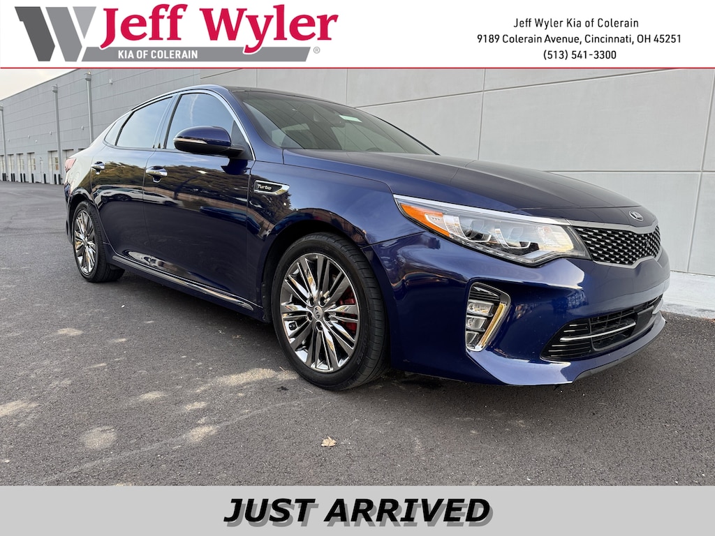 Jeff Wyler Kia of Colerain is delighted to offer this fantastic-looking 2018 Kia Optima SX in Horizon Blue. Limited Package (Black) (Chrome Accent Front/Rear Bumpers, Chrome Accent Side Sills, Heated Leather-Wrapped D-Shaped Steering Wheel, Heated Rear Outboard Seats, Nappa Leather Seat Trim, Premium Black Suede Headliner & Pillar Covers, Rear Side Window Sun Shades, Surround View Monitor, and Wheels: 7.5J x 18" Alloy w/Chrome Machine Finish), Technology Package (Advanced Smart Cruise Control, Autonomous Emergency Braking (AEB), Electronic Parking Brake, Front Collision Warning System, High Beam Assist, Lane Departure Warning System, and Radio: AM/FM/MP3/SiriusXM Premium Audio System), 4-Wheel Disc Brakes, 6 Speakers, ABS brakes, Air Conditioning, Alloy wheels, AM/FM radio: SiriusXM, Anti-whiplash front head restraints, Apple CarPlay & Android Auto, Auto-dimming Rear-View mirror, Automatic temperature control, Brake assist, Bumpers: body-color, Cargo Mat, Cargo Net, Delay-off headlights, Driver door bin, Driver vanity mirror, Dual front impact airbags, Dual front side impact airbags, Electronic Stability Control, Emergency communication system, Exterior Parking Camera Rear, Four wheel independent suspension, Front anti-roll bar, Front Bucket Seats, Front Center Armrest, Front dual zone A/C, Front fog lights, Front reading lights, Fully automatic headlights, Heated & Ventilated Front Bucket Seats, Heated door mirrors, Heated front seats, Illuminated entry, Knee airbag, Leather Seat Trim, Leather Shift Knob, Leather steering wheel, Low tire pressure warning, Memory seat, Navigation System, Occupant sensing airbag, Outside temperature display, Overhead airbag, Overhead console, Panic alarm, Passenger door bin, Passenger vanity mirror, Power door mirrors, Power driver seat, Power moonroof, Power passenger seat, Power steering, Power windows, Radio data system, Radio: AM/FM/MP3/SiriusXM Audio System, Rear anti-roll bar, Rear Parking Sensors, Rear reading lights, Rear seat center armrest, Rear window defroster, Remote keyless entry, Security system, Speed control, Speed-sensing steering, Split folding rear seat, Spoiler, Sport steering wheel, Steering wheel mounted audio controls, Tachometer, Telescoping steering wheel, Tilt steering wheel, Traction control, Trip computer, Turn signal indicator mirrors, Variably intermittent wipers, Ventilated front seats, and Wheels: 7.5J x 18" Alloy w/Machine Finish Our PRE-OWNED vehicles are put through a rigorous 167- POINT QUALITY ASSURANCE INSPECTION along with an average amount of over $1,400.00 SPENT to recondition each vehicle so we can be sure to deliver you the highest quality vehicle like you deserve! ***ONLINE PRICE DOES NOT INCLUDE WYLER FAMILY FIRST PACKAGE***