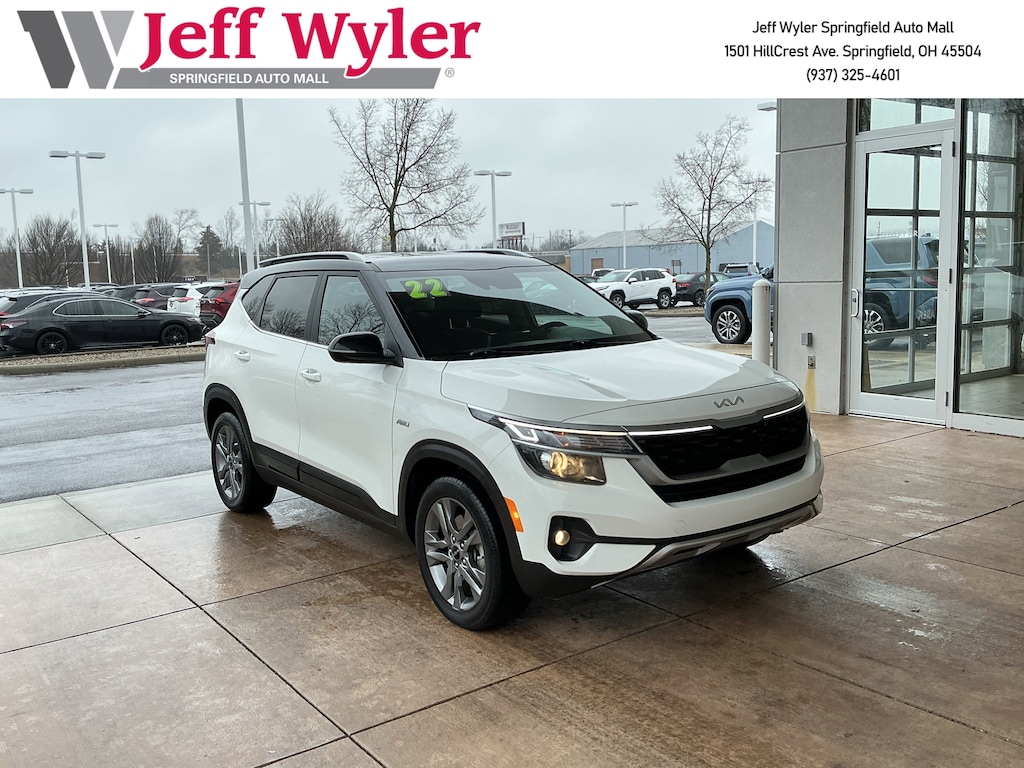 Jeff Wyler Springfield Auto Mall is pleased to offer this beautiful-looking 2022 Kia Seltos S in Clear White/Black Roof. Well equipped with: Glossy Black Door Garnish Package (Glossy Black Door Garnish), 4-Wheel Disc Brakes, 6 Speakers, 6.052 Axle Ratio, ABS brakes, Air Conditioning, Alloy wheels, AM/FM radio: SiriusXM, Apple CarPlay & Android Auto, Auto High-beam Headlights, Automatic temperature control, Brake assist, Bumpers: body-color, Carpeted Floor Mats, Cloth & Sofino Premium Leatherette Seat Trim, Delay-off headlights, Driver door bin, Driver vanity mirror, Dual front impact airbags, Dual front side impact airbags, Electronic Stability Control, Emergency communication system: 911 Connect, Exterior Parking Camera Rear, Four wheel independent suspension, Front anti-roll bar, Front Bucket Seats, Front Center Armrest, Front fog lights, Front reading lights, Fully automatic headlights, Heated door mirrors, Heated front seats, Illuminated entry, Leather Shift Knob, Low tire pressure warning, Navigation System, Occupant sensing airbag, Outside temperature display, Overhead airbag, Overhead console, Panic alarm, Passenger door bin, Passenger vanity mirror, Power door mirrors, Power steering, Power windows, Radio: AM/FM/MP3 Display Audio w/Navigation, Rear seat center armrest, Rear window defroster, Rear window wiper, Remote keyless entry, Security system, Speed control, Speed-sensing steering, Split folding rear seat, Spoiler, Steering wheel mounted audio controls, Tachometer, Telescoping steering wheel, Tilt steering wheel, Traction control, Trip computer, Turn signal indicator mirrors, Variably intermittent wipers, and Wheels: 17" Alloy w/Dark Gray Finish. Ask about available certifications. Used vehicles 10 years of age or newer with less than 100,000 miles are eligible for the Wyler Assurance Program, but eligible vehicles must pass our reconditioning process and multi-point inspection. Provided the vehicle passes inspection, vehicles will be eligible for the 6 month/6,000 mile limited warranty. The 6 month/6,000 mile limited warranty is NOT available on AS-IS vehicles, wholesale vehicles, lease buyback/pass-thru vehicles or un-inspected vehicles. Note that this program can also apply to vehicles where the remaining factory coverage is less than 6 months or 6,000 miles. Please check the Federal Trade Commission (FTC) Buyers guide on the vehicle for full details as to whether or not warranty coverage may apply. Contact Dealer for additional details. The Wyler Assurance 6 month/6,000 Mile limited warranty ends 6 months from the date of the Retail Purchase Agreement (BUYERS ORDER) or when the vehicle's odometer registers 6,000 additional miles to the mileage listed on the BUYERS ORDER, whichever comes first. Your Deductible - The warranty holder on your contract pays the first $100 of each covered repair.