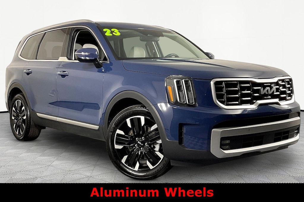 Only 9,527 Miles! Delivers 24 Highway MPG and 18 City MPG! This Kia Telluride delivers a Regular Unleaded V-6 3.8 L/231 engine powering this Automatic transmission. NAVY, LEATHER SEAT TRIM, MIDNIGHT LAKE BLUE, CARPET FLOOR MATS.
