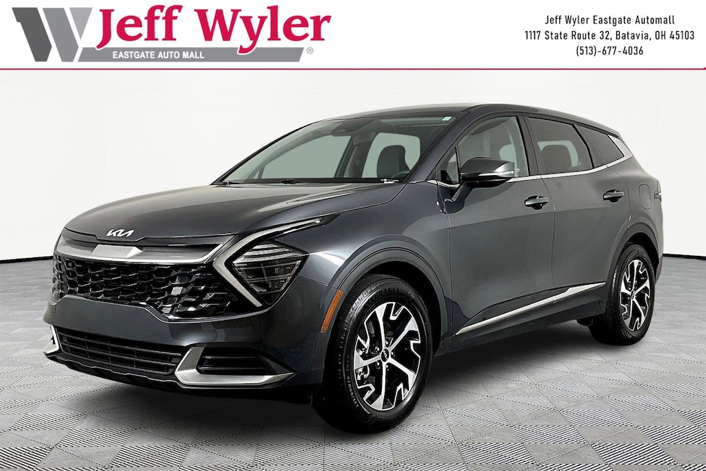 Jeff Wyler Eastgate Auto Mall is very proud to offer this wonderful 2025 Kia Sportage EX in Gravity Gray. Well equipped with: 4-Wheel Disc Brakes, 6 Speakers, ABS brakes, Air Conditioning, Alloy wheels, AM/FM radio: SiriusXM, Apple CarPlay & Android Auto, Auto High-beam Headlights, Automatic temperature control, Brake assist, Bumpers: body-color, Carpeted Floor Mats, Compass, Delay-off headlights, Driver door bin, Driver vanity mirror, Dual front impact airbags, Dual front side impact airbags, Electronic Stability Control, Emergency communication system, Four wheel independent suspension, Front anti-roll bar, Front Bucket Seats, Front Center Armrest, Front dual zone A/C, Fully automatic headlights, Heated door mirrors, Heated Front Bucket Seats, Heated front seats, Illuminated entry, Leather Shift Knob, Leather steering wheel, Leatherette Seat Trim, Low tire pressure warning, Navigation System, Occupant sensing airbag, Outside temperature display, Overhead airbag, Overhead console, Panic alarm, Passenger door bin, Passenger vanity mirror, Power door mirrors, Power driver seat, Power steering, Power windows, Radio: AM/FM/HD Audio System, Rain sensing wipers, Rear anti-roll bar, Rear seat center armrest, Rear side impact airbag, Rear window defroster, Rear window wiper, Remote keyless entry, Security system, Speed control, Speed-sensing steering, Split folding rear seat, Spoiler, Steering wheel mounted audio controls, Tachometer, Telescoping steering wheel, Tilt steering wheel, Traction control, Trip computer, Turn signal indicator mirrors, Variably intermittent wipers, and Wheels: 18" x 7.5J Machined Alloy. CARFAX One-Owner. Ask about available certifications. Used vehicles 10 years of age or newer with less than 100,000 miles are eligible for the Wyler Assurance Program, but eligible vehicles must pass our reconditioning process and multi-point inspection. Provided the vehicle passes inspection, vehicles will be eligible for the 6 month/6,000 mile limited warranty. The 6 month/6,000 mile limited warranty is NOT available on AS-IS vehicles, wholesale vehicles, lease buyback/pass-thru vehicles or un-inspected vehicles. Note that this program can also apply to vehicles where the remaining factory coverage is less than 6 months or 6,000 miles. Please check the Federal Trade Commission (FTC) Buyers guide on the vehicle for full details as to whether or not warranty coverage may apply. Contact Dealer for additional details. The Wyler Assurance 6 month/6,000 Mile limited warranty ends 6 months from the date of the Retail Purchase Agreement (BUYERS ORDER) or when the vehicle's odometer registers 6,000 additional miles to the mileage listed on the BUYERS ORDER, whichever comes first. Your Deductible - The warranty holder on your contract pays the first $100 of each covered repair.