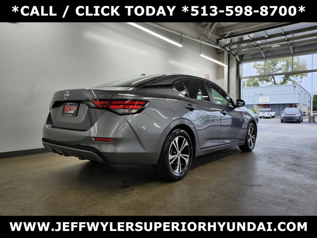 Jeff Wyler Superior Hyundai is pumped up to offer this stunning 2023 Nissan Sentra SV in Gun Metallic. Well equipped with: All-Weather Package (Dual Zone Auto Climate Control, Heated Front Seats, Leather-Wrapped Heated Steering Wheel, and Remote Engine Start), CVT with Xtronic, Charcoal Cloth, 16" Alloy Wheels, 4-Wheel Disc Brakes, 6 Speakers, ABS brakes, Air Conditioning, Alloy wheels, AM/FM radio: SiriusXM, Auto High-beam Headlights, Blind Spot Warning, Brake assist, Bumpers: body-color, Clear Rear Bumper Protector, Delay-off headlights, Driver door bin, Driver vanity mirror, Dual front impact airbags, Dual front side impact airbags, Electronic Stability Control, Four wheel independent suspension, Front anti-roll bar, Front Bucket Seats, Front Center Armrest, Front reading lights, Fully automatic headlights, Heated door mirrors, Illuminated entry, Knee airbag, Low tire pressure warning, Nissan USB Charging Cable Set, NissanConnect featuring Apple CarPlay and Android Auto, Occupant sensing airbag, Outside temperature display, Overhead airbag, Overhead console, Panic alarm, Passenger door bin, Passenger vanity mirror, Power door mirrors, Power steering, Power windows, Premium Cloth Seat Trim, Radio data system, Radio: AM/FM w/RDS/MP3/Aux-In, Rear anti-roll bar, Rear Parking Sensors, Rear side impact airbag, Rear window defroster, Remote keyless entry, Security system, Speed control, Speed-sensing steering, Split folding rear seat, Steering wheel mounted audio controls, Tachometer, Telescoping steering wheel, Tilt steering wheel, Traction control, Trip computer, and Variably intermittent wipers. CARFAX One-Owner. Clean CARFAX. This sales price excludes tax, title, and dealer fees. While every reasonable effort is made to ensure the accuracy of this information, we are not responsible for any errors or omissions contained on these pages. Used vehicles 10 years of age or newer with less than 100,000 miles are eligible for the Wyler Assurance Program, but eligible vehicles must pass our reconditioning process and multi-point inspection. Provided the vehicle passes inspection, vehicles will be eligible for the 6 month/6,000 mile limited warranty. The 6 month/6,000 mile limited warranty is NOT available on AS-IS vehicles, wholesale vehicles, lease buyback/pass-thru vehicles or un-inspected vehicles. Note that this program can also apply to vehicles where the remaining factory coverage is less than 6 months or 6,000 miles. Please check the Federal Trade Commission (FTC) Buyers guide on the vehicle for full details as to whether or not warranty coverage may apply. Contact Dealer for additional details. The Wyler Assurance 6 month/6,000 Mile limited warranty ends 6 months from the date of the Retail Purchase Agreement (BUYERS ORDER) or when the vehicle's odometer registers 6,000 additional miles to the mileage listed on the BUYERS ORDER, whichever comes first.Your Deductible - The warranty holder on your contract pays the first $100 of each covered repair.