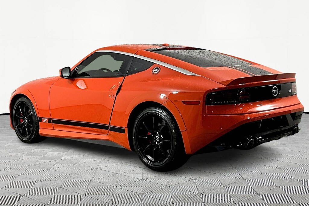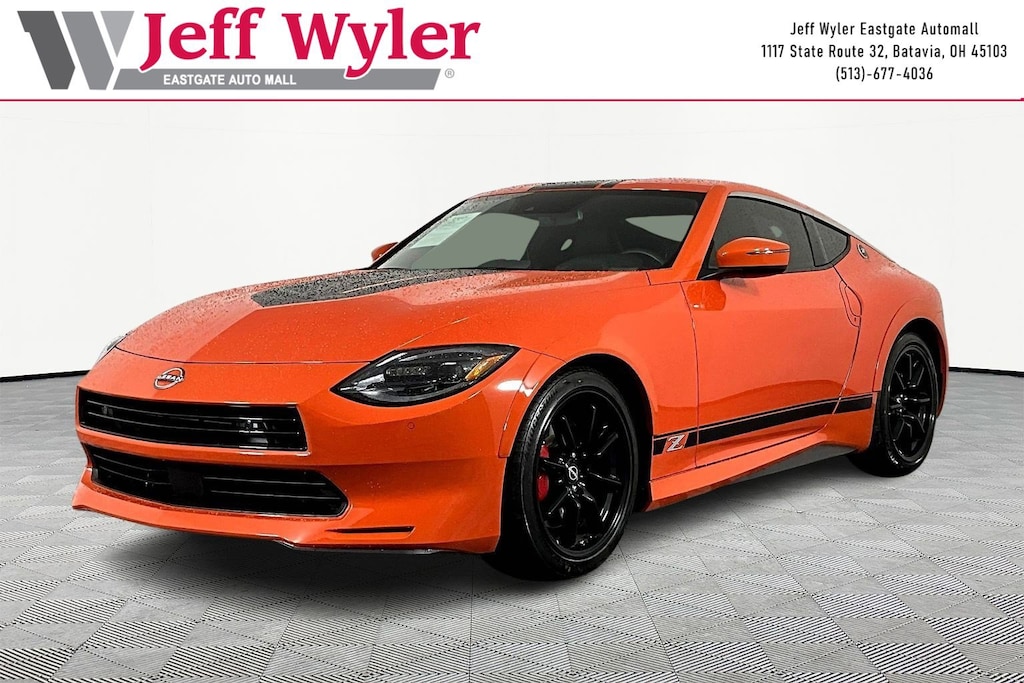 Jeff Wyler Eastgate Auto Mall is pleased to offer this great-looking 2024 Nissan Z Performance in New Sight Orange. Well equipped with: Floor Mat Package (First Aid Kit), Heritage Edition (Wheel: 19" Watanabe Style Alloy), 4-Wheel Disc Brakes, 8 Speakers, ABS brakes, Air Conditioning, Alloy wheels, AM/FM radio: SiriusXM, Auto High-beam Headlights, Auto-dimming Rear-View mirror, Automatic temperature control, Blind Spot Warning, Brake assist, Bumpers: body-color, Compass, Delay-off headlights, Driver door bin, Driver vanity mirror, Dual front impact airbags, Dual front side impact airbags, Electronic Stability Control, Emergency communication system: NissanConnect Services, Four wheel independent suspension, Front anti-roll bar, Front Bucket Seats, Front Center Armrest, Front reading lights, Fully automatic headlights, Garage door transmitter, Heated door mirrors, Heated Front Bucket Seats, Heated front seats, Heritage Edition (K11), Illuminated Kick Plate - Black Metallic, Interior Door Scuff Protection, Leather Shift Knob, Leather steering wheel, Leather-Appointed Seat Trim, Low tire pressure warning, Navigation system: NissanConnect with Navigation and Services, Occupant sensing airbag, Outside temperature display, Overhead airbag, Panic alarm, Passenger door bin, Passenger vanity mirror, Power door mirrors, Power driver seat, Power passenger seat, Power steering, Power windows, Radio data system, Radio: Bose Audio System w/8 Speakers, Rear anti-roll bar, Rear window defroster, Remote keyless entry, Security system, Speed control, Speed-sensing steering, Spoiler, Steering wheel mounted audio controls, Tachometer, Telescoping steering wheel, Tilt steering wheel, Traction control, Trip computer, Turn signal indicator mirrors, Variably intermittent wipers, Voltmeter, and Wheels: 19" RAYS Super-Lightweight Forged Alloy. CARFAX One-Owner. Clean CARFAX. Ask about available certifications. Used vehicles 10 years of age or newer with less than 100,000 miles are eligible for the Wyler Assurance Program, but eligible vehicles must pass our reconditioning process and multi-point inspection. Provided the vehicle passes inspection, vehicles will be eligible for the 6 month/6,000 mile limited warranty. The 6 month/6,000 mile limited warranty is NOT available on AS-IS vehicles, wholesale vehicles, lease buyback/pass-thru vehicles or un-inspected vehicles. Note that this program can also apply to vehicles where the remaining factory coverage is less than 6 months or 6,000 miles. Please check the Federal Trade Commission (FTC) Buyers guide on the vehicle for full details as to whether or not warranty coverage may apply. Contact Dealer for additional details. The Wyler Assurance 6 month/6,000 Mile limited warranty ends 6 months from the date of the Retail Purchase Agreement (BUYERS ORDER) or when the vehicle's odometer registers 6,000 additional miles to the mileage listed on the BUYERS ORDER, whichever comes first. Your Deductible - The warranty holder on your contract pays the first $100 of each covered repair.
