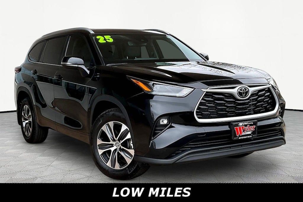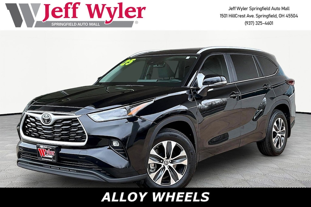 Jeff Wyler Springfield Auto Mall is pumped up to offer this good-looking 2025 Toyota Highlander XLE in Black. Well equipped with: ABS brakes, Active Cruise Control, Alloy wheels, Electronic Stability Control, Front dual zone A/C, Heated door mirrors, Heated Front Bucket Seats, Heated front seats, Illuminated entry, Low tire pressure warning, Power Liftgate, Power moonroof, Remote keyless entry, Traction control, 3rd row seats: split-bench, 4-Wheel Disc Brakes, 6 Speakers, Air Conditioning, AM/FM radio: SiriusXM, Apple CarPlay/Android Auto, Auto High-beam Headlights, Auto-dimming Rear-View mirror, Automatic temperature control, Brake assist, Bumpers: body-color, Delay-off headlights, Driver door bin, Driver vanity mirror, Dual front impact airbags, Dual front side impact airbags, Emergency communication system: Safety Connect (up to 10-year trial subscription), Exterior Parking Camera Rear, Four wheel independent suspension, Front anti-roll bar, Front Bucket Seats, Front Center Armrest, Front fog lights, Front reading lights, Fully automatic headlights, Garage door transmitter: HomeLink, Knee airbag, Leather Shift Knob, Leather steering wheel, Occupant sensing airbag, Outside temperature display, Overhead airbag, Overhead console, Panic alarm, Passenger door bin, Passenger vanity mirror, Power door mirrors, Power driver seat, Power passenger seat, Power steering, Power windows, Radio: 8" Toyota Audio Multimedia, Rear air conditioning, Rear anti-roll bar, Rear reading lights, Rear window defroster, Rear window wiper, Reclining 3rd row seat, Security system, SofTex Seat Trim, Speed control, Speed-sensing steering, Split folding rear seat, Spoiler, Steering wheel mounted audio controls, Tachometer, Telescoping steering wheel, Tilt steering wheel, Trip computer, Turn signal indicator mirrors, Variably intermittent wipers, and Wheels: 18" Machined-Finish Alloy. Ask about available certifications. Used vehicles 10 years of age or newer with less than 100,000 miles are eligible for the Wyler Assurance Program, but eligible vehicles must pass our reconditioning process and multi-point inspection. Provided the vehicle passes inspection, vehicles will be eligible for the 6 month/6,000 mile limited warranty. The 6 month/6,000 mile limited warranty is NOT available on AS-IS vehicles, wholesale vehicles, lease buyback/pass-thru vehicles or un-inspected vehicles. Note that this program can also apply to vehicles where the remaining factory coverage is less than 6 months or 6,000 miles. Please check the Federal Trade Commission (FTC) Buyers guide on the vehicle for full details as to whether or not warranty coverage may apply. Contact Dealer for additional details. The Wyler Assurance 6 month/6,000 Mile limited warranty ends 6 months from the date of the Retail Purchase Agreement (BUYERS ORDER) or when the vehicle's odometer registers 6,000 additional miles to the mileage listed on the BUYERS ORDER, whichever comes first. Your Deductible - The warranty holder on your contract pays the first $100 of each covered repair.