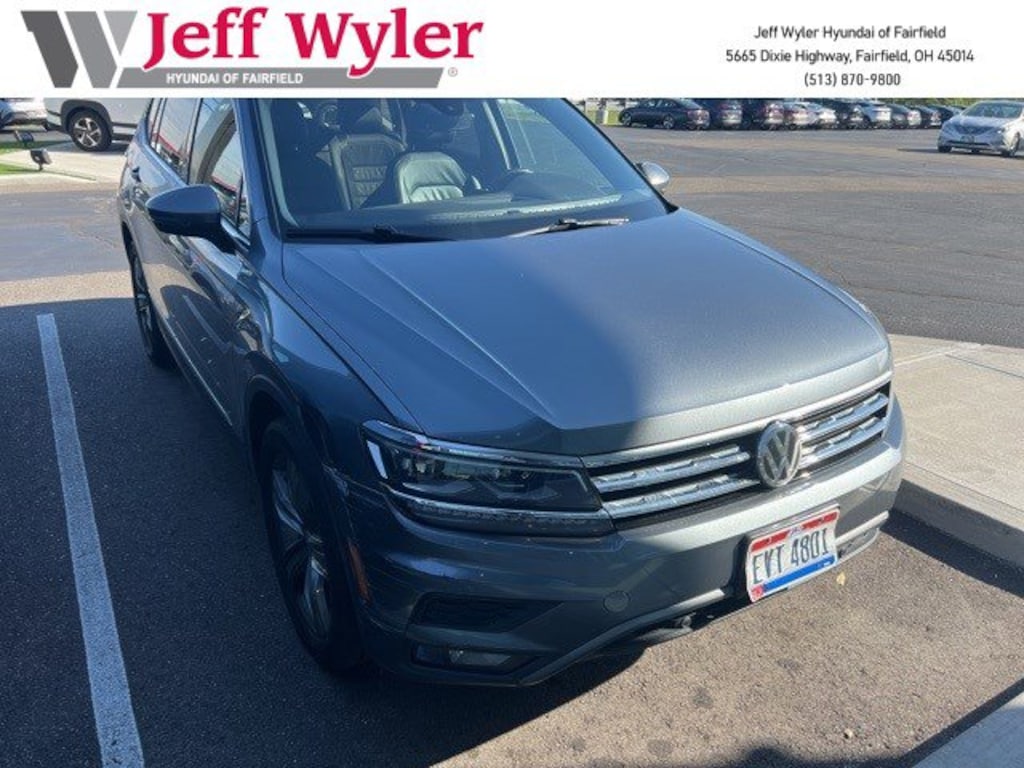 Clean CARFAX. Jeff Wyler Hyundai of Fairfield is delighted to offer this good-looking 2018 Volkswagen Tiguan 2.0T SEL Premium in . Well equipped with: AWD, Android Auto, Apple CarPlay, CALL NOW FOR YOUR VIP APPOINTMENT 513-870-9800, FULLY SERVICED w/RECORDS, GUARANTEED FINANCING!! NO MATTER YOUR SITUATION WE CAN GET AN APPROVAL!!, THE #1 Volume dealer in the region! Come see why for yourself Today!!, WE PAY MORE FOR YOUR TRADE!!, 3.33 Axle Ratio, 4-Wheel Disc Brakes, 8 Speakers, ABS brakes, Air Conditioning, Alloy wheels, AM/FM radio: SiriusXM, Auto High-beam Headlights, Auto-dimming Rear-View mirror, Automatic temperature control, Brake assist, Bumpers: body-color, Compass, Delay-off headlights, Driver door bin, Driver vanity mirror, Dual front impact airbags, Dual front side impact airbags, Electronic Stability Control, Emergency communication system: VW Car-Net, Exterior Parking Camera Rear, Four wheel independent suspension, Front anti-roll bar, Front Bucket Seats, Front Center Armrest, Front dual zone A/C, Front fog lights, Front reading lights, Fully automatic headlights, Heated door mirrors, Heated Front Bucket Seats, Heated front seats, Heated steering wheel, Illuminated entry, Leather Shift Knob, Low tire pressure warning, Memory seat, Navigation System, Occupant sensing airbag, Outside temperature display, Overhead airbag, Overhead console, Panic alarm, Passenger door bin, Passenger vanity mirror, Power door mirrors, Power driver seat, Power Liftgate, Power moonroof, Power steering, Power windows, Radio data system, Radio: AM/FM/HD/CD w/Dual USB Inputs, Rain sensing wipers, Rear anti-roll bar, Rear reading lights, Rear seat center armrest, Rear window defroster, Rear window wiper, Remote CD player, Remote keyless entry, Roof rack: rails only, Security system, Speed control, Speed-sensing steering, Split folding rear seat, Spoiler, Steering wheel mounted audio controls, Tachometer, Telescoping steering wheel, Tilt steering wheel, Traction control, Trip computer, Turn signal indicator mirrors, Variably intermittent wipers, Vienna Leather Seating Surfaces, and Wheels: 19" Victoria Falls Alloy. TO CHECK ON THE AVAILABILITY OF THIS VEHICLE REACH OUT TO ONE OF OUR TEAM MEMBERS!! ALSO SHOP ONLINE AT https://www.jeffwylerhyundaioffairfield.com/ Proudly Serving: Cincinnati, Dayton, Columbus, Louisville, Lexington, Indianapolis, Hamilton, Florence, Alexandria, Beavercreek, Springdale, West Chester, Monroe, Fairfield, Kenwood, Newport and all of greater Cincinnati Ohio, Indiana, and Northern Kentucky.